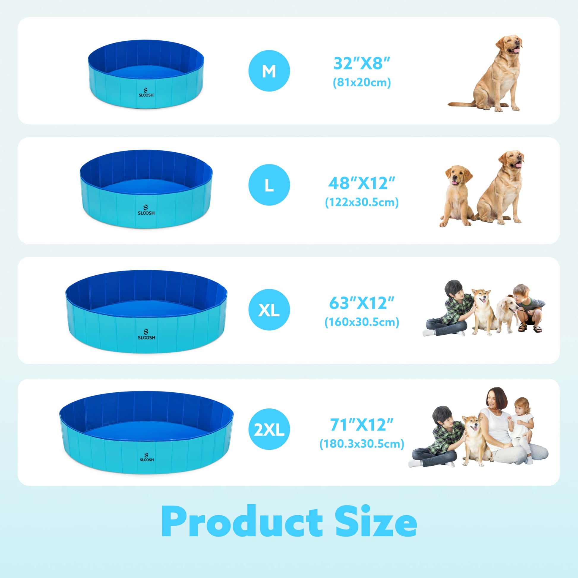 Sloosh Foldable Dog Kiddie Pool - Portable Hard Plastic Doggie Swimming Pool, Anti-Slip Collapsible Pets Bath Tub Suitable for Kids Indoor Outdoor Backyard Use (71" x 12", Blue)