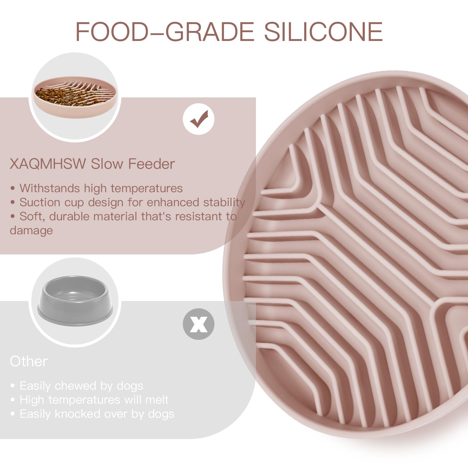 Slow Feeder Dog Bowls, Puzzle Silicone Dog Feeding Bowls with Suction Cups, Anti-Choking, Non-Slip Design, Reduces Boredom, Anxiety, Ideal for Medium to Small Dogs & Cats - XAQMHSW (Pink)