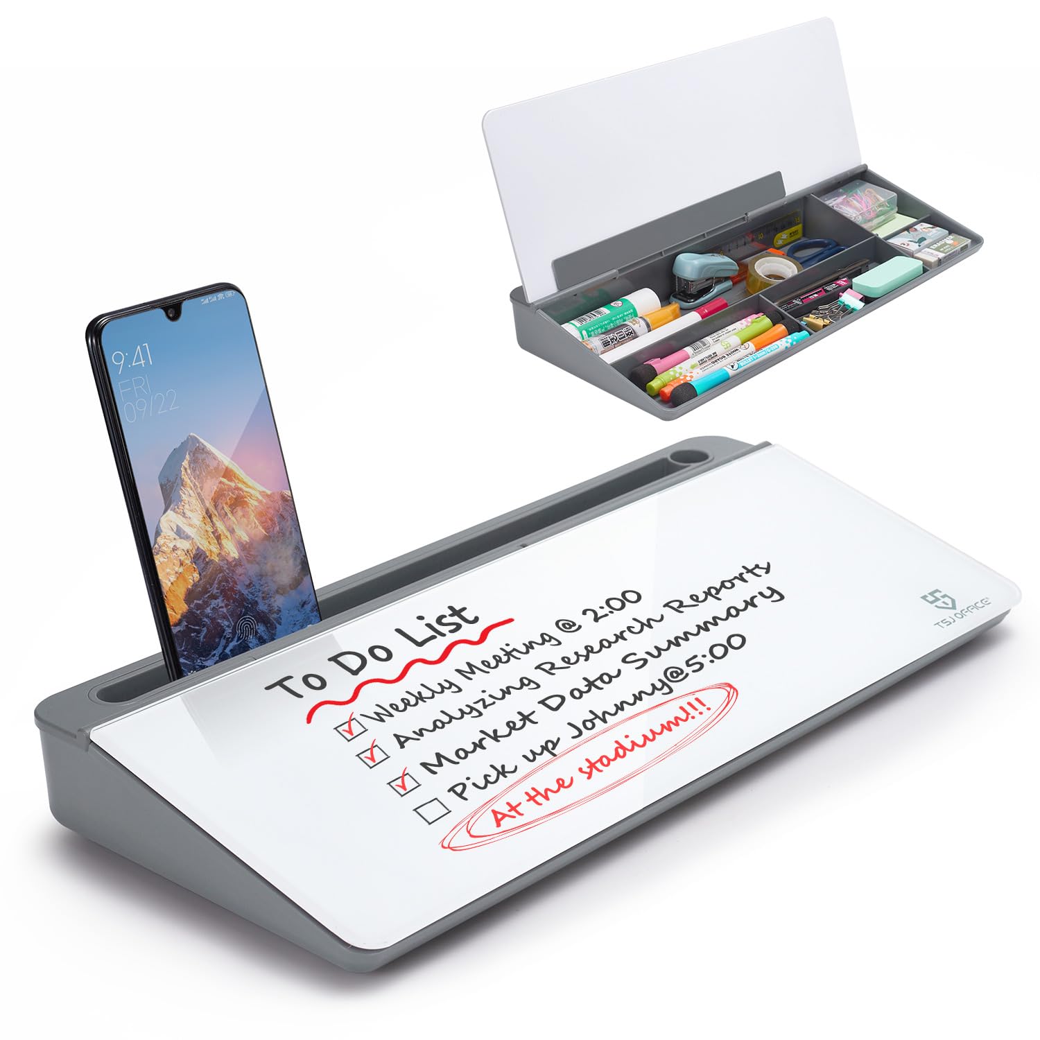 • SMOOTH WRITING & EASY TO WIPE: TSJ OFFICE mini desktop computer pad comes with a smooth and durable temple glass dry erase writing surface. This white board allows you to write and wipes clean with ease over and over. Our easel whiteboard always stays white and easy to read.