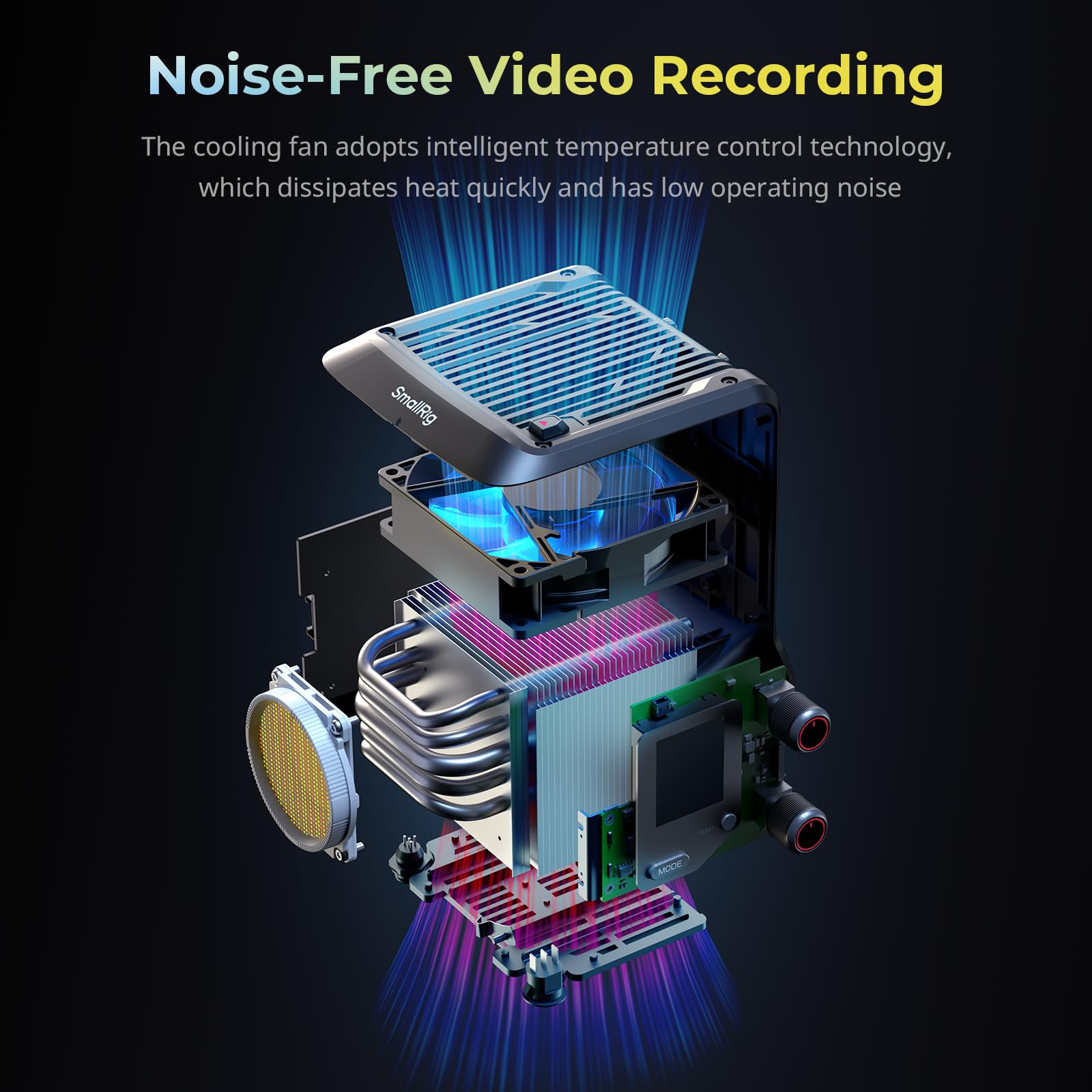 • Ultra-Quiet Cooling System: The noise level of the ultra-quiet fan is only 28dB at 1 meter (softer than the sound of leaves blowing in the wind). The active heat dissipation function will automatically activate when the light works.