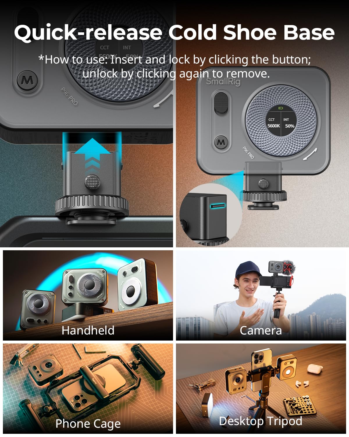SMALLRIG Vibe P96 Pro Led Video Light, Portable Camera Light for Photography, Cold Shoe Light, CRI95+, 2500-6500K, 5 Effects, Fill Light Accessories for Content Creator, Streaming Black
