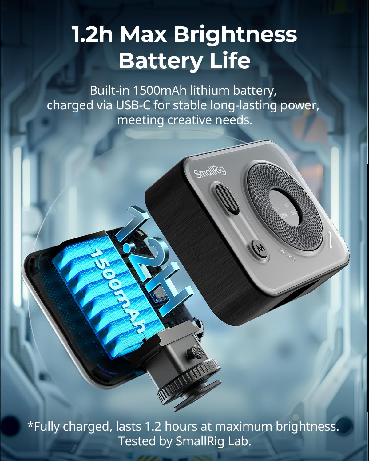 • 【Long-lasting Power】Built-in 1500mAh lithium polymer battery supports USB-C charging, providing up to 1.2 hours at full power and 3 hours for regular shooting.