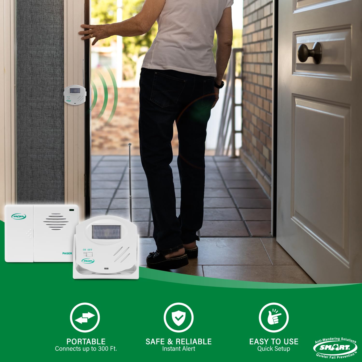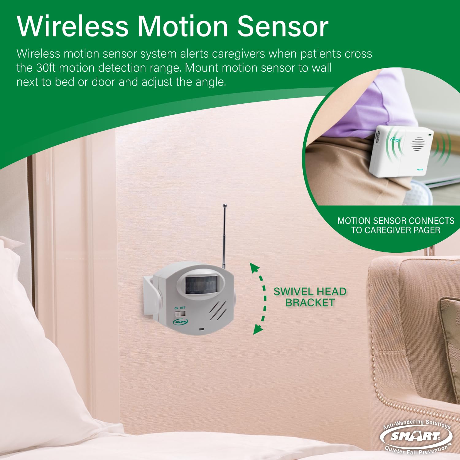Smart Caregiver Wireless Motion Sensor Alarm System with Pager for Fall and Wandering Prevention | Mountable Motion Detector Alarm Alerts Medical Caregiver with Up to 300' Range | Bed or Door Movement