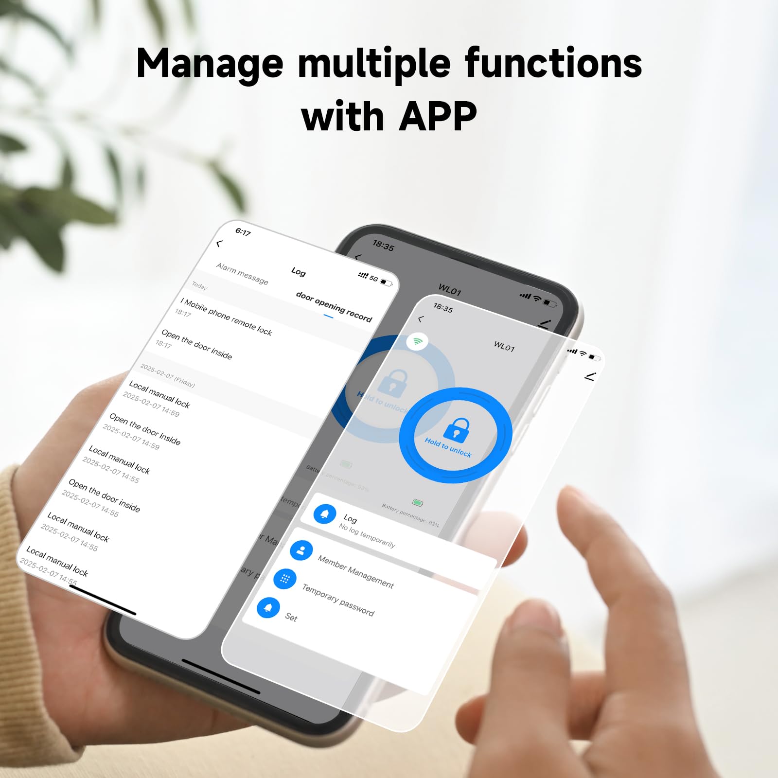 • APP Remote Control: The APP offers seamless control of your deadbolt smart lock from anywhere in the world. You can lock and unlock your door, check the live feed, manage user members, set temporary password and so on, all from the convenience of your smartphone. Ideal for homeowners, vacation rental hosts, and property managers. Note: The smart home device can only connect to 2.4GHz WiFi and cannot connect to 5GHz WiFi.