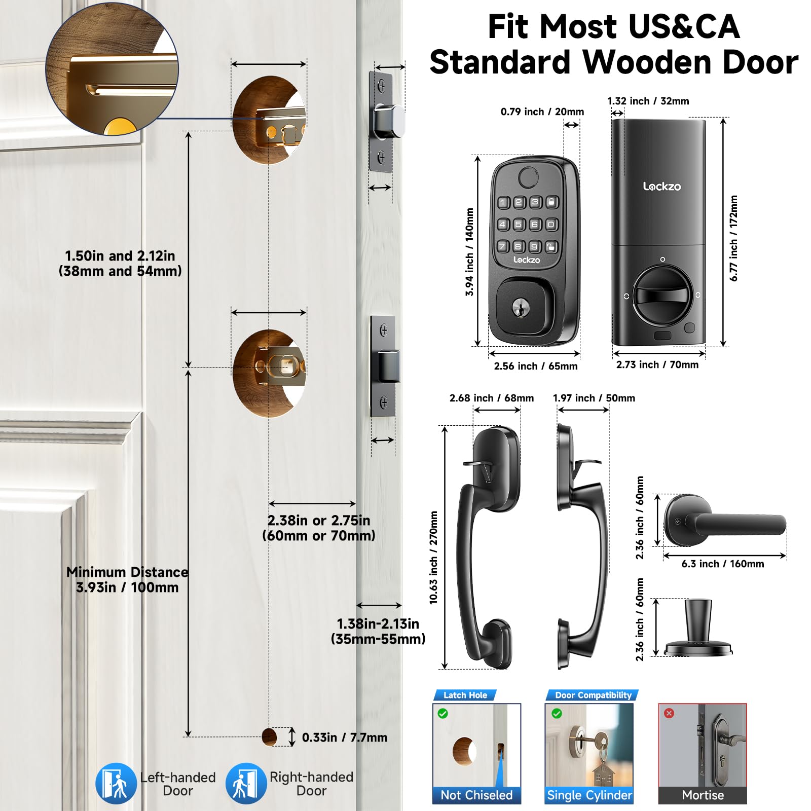 • Easy Installation: Skip the hassle of hiring a locksmith: Compatible with most standard US and Canadian deadbolt spacings(door thickness:1.38 in-2.13 in [35-55 mm], backset:2.38 in or 2.75 in [60 mm or 70 mm]) installs in 15 minutes. Fits 99% of doors, both left and right-handed (check your door dimensions for a perfect fit)