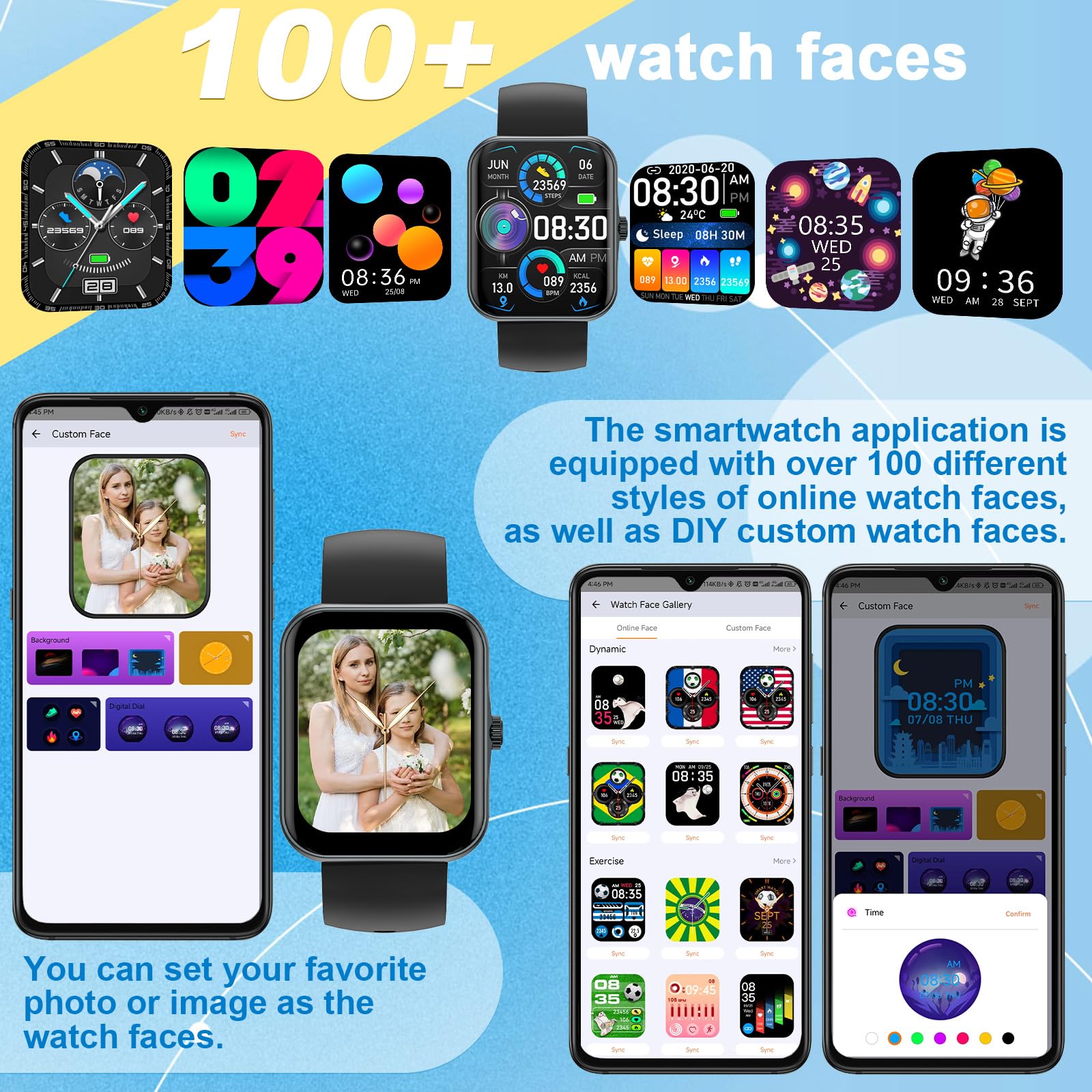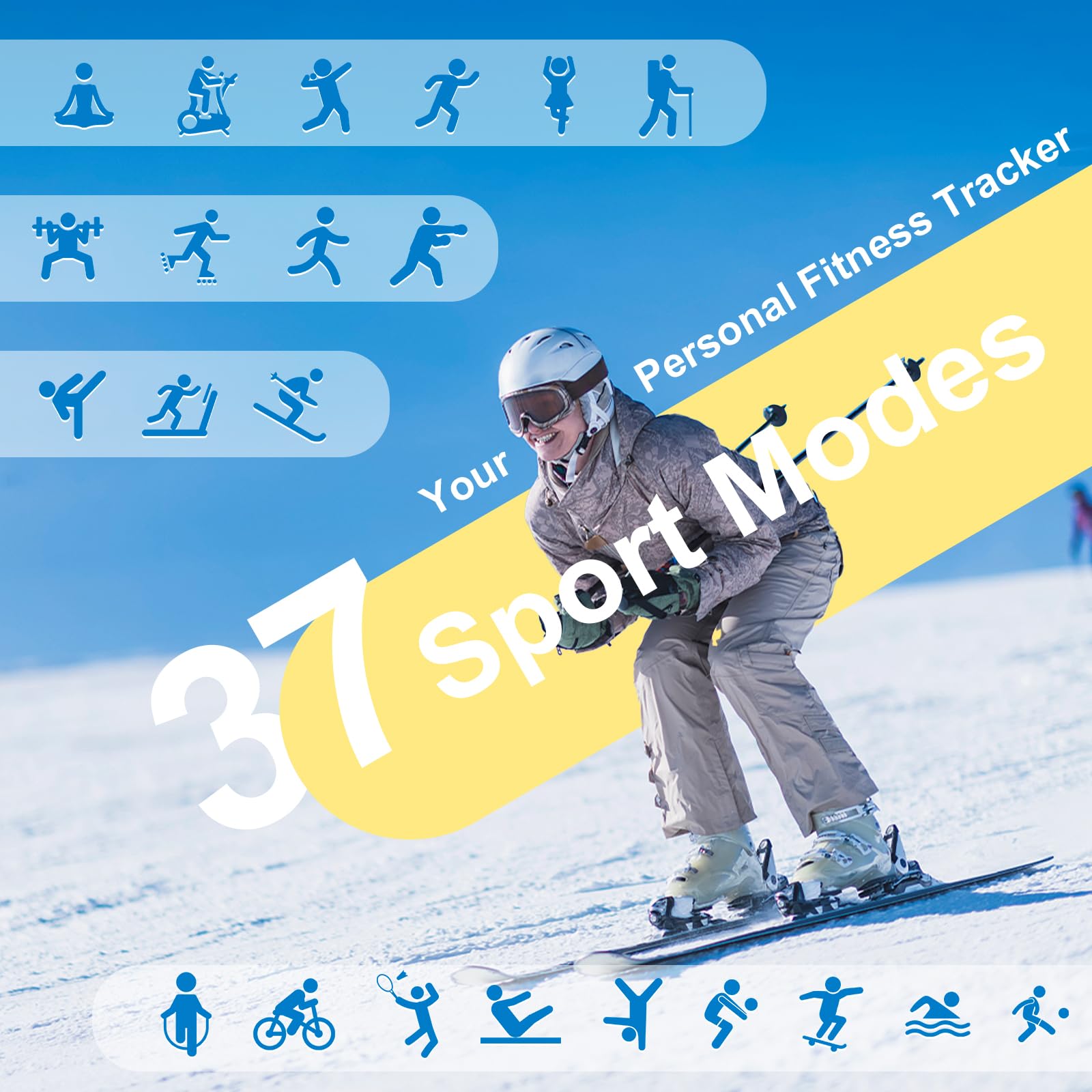 • 🏃 37 Sport Modes : The watch can accurately record your daily activities, such as steps, distance, and calorie consumption. It can help you track daily activities and achieve good fitness results with real-time statistics on your smartwatch. Supports 37 sports modes, such as mountaineering, running, cycling, yoga, etc. You can visually read your motion data on your watch. Compatible with Android 4.4 and above, iOS 8.0 and above smartphones. It is the perfect companion for any fitness activity.