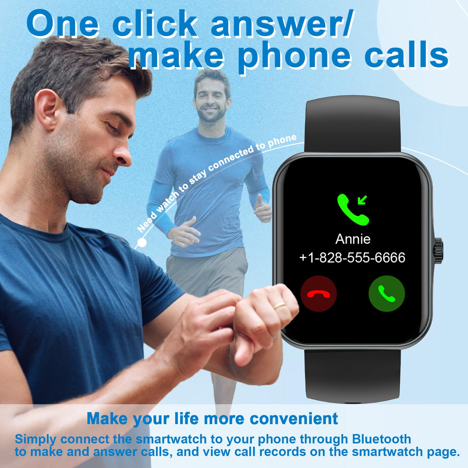 • 📞Receive incoming calls/message alerts: Simply connect the smartwatch to your phone via Bluetooth, you can make calls, answer, view call logs, etc. in the smartwatch interface, and synchronize contacts to the watch. Built-in microphone and speaker can free your hands when working out, working out, driving. You can also enjoy a colorful smart life by controlling your phone's music and camera through the smart watch. You can receive SMS and APP messages (Note: you can't reply to messages)