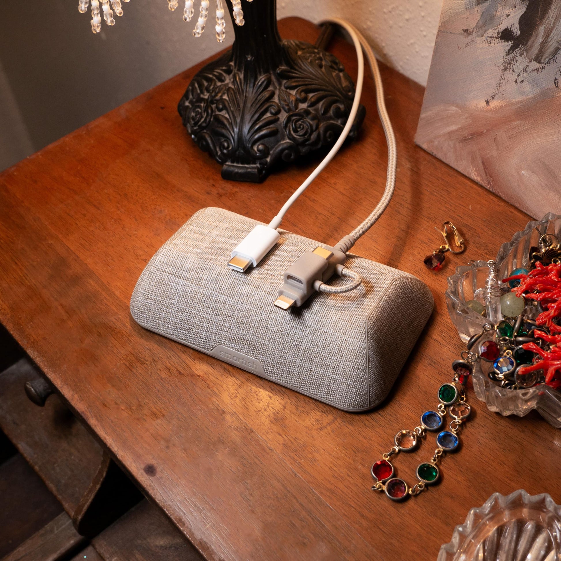 • Heathered-Fabric Cover - Practical without making your space fugly. Cable Wrangler isn't just functional, it's also stylish. The heathered-fabric cover gives it a sleek and modern look that complements any décor. It won't look out of place on your desk at work or next to your bed at home. Magnetic surface is scratch-safe and leaves cables clean with no residue. You can choose from a variety of colors to match your personal style or blend in seamlessly with your existing furniture.