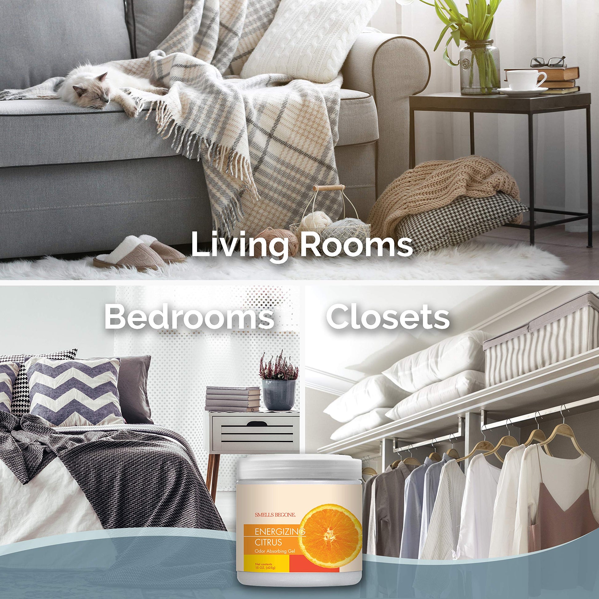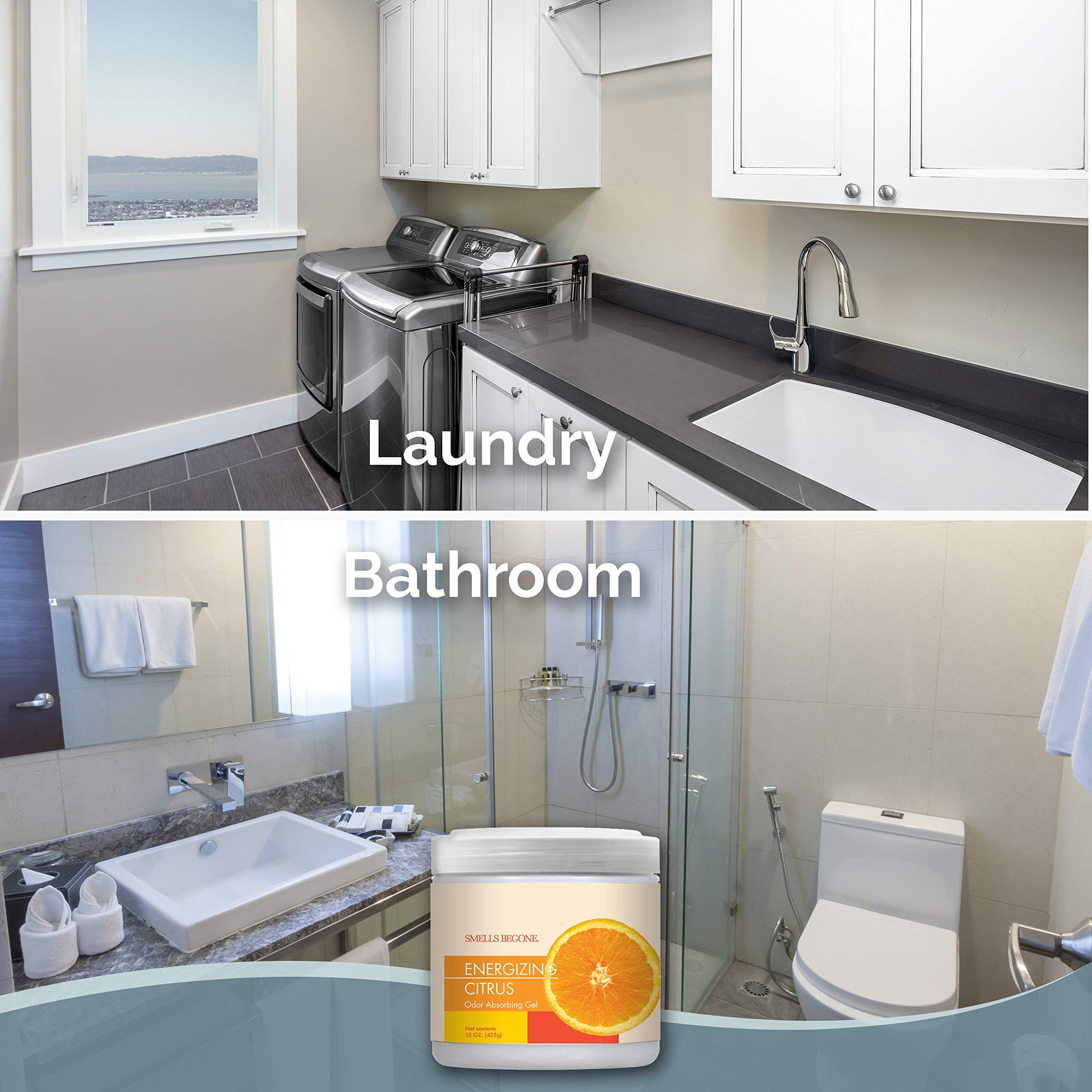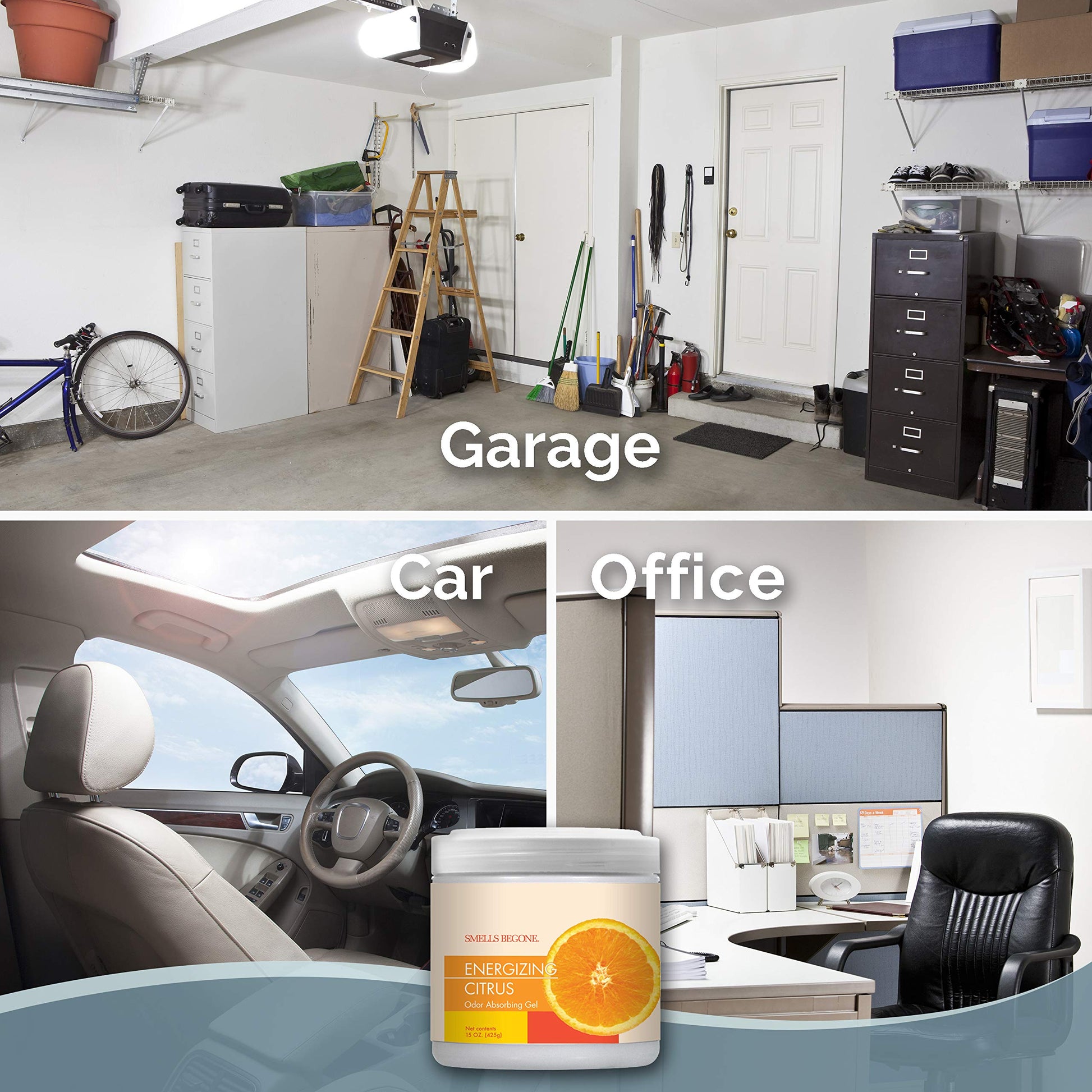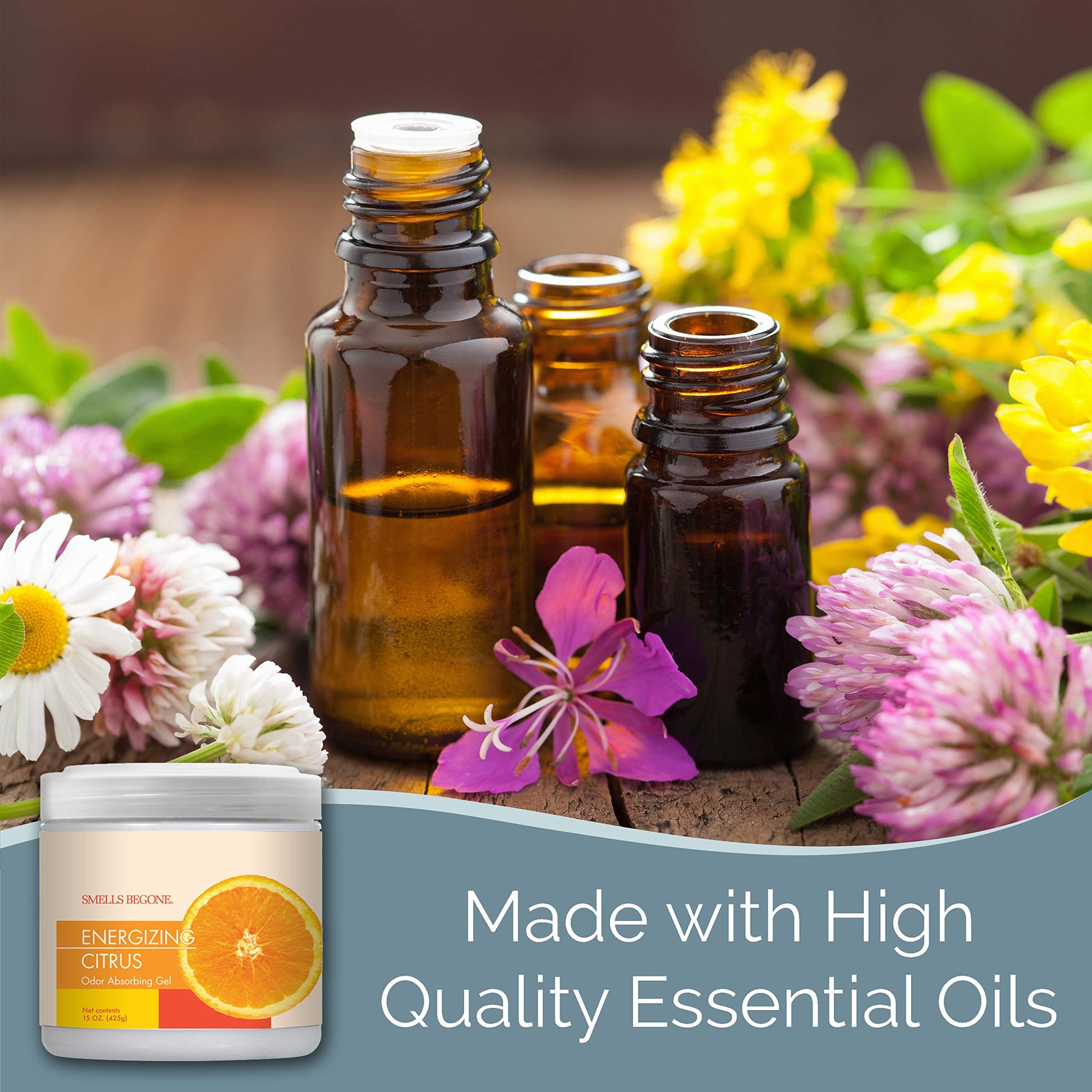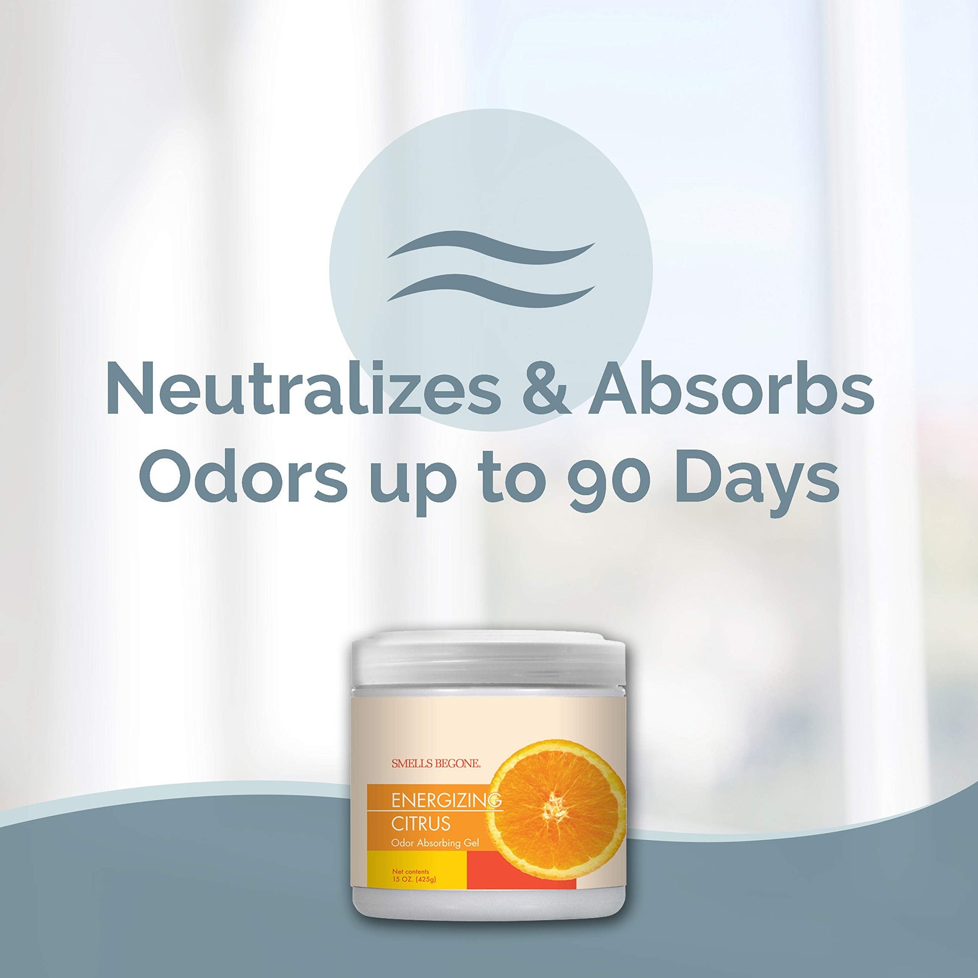 SMELLS BEGONE 15 oz Air Freshener Odor Absorber Gel - Absorbs Odor from Bathrooms, Cars, Pet Areas, Boats & RVs - Made with Essential Oils - Energizing Citrus Scent