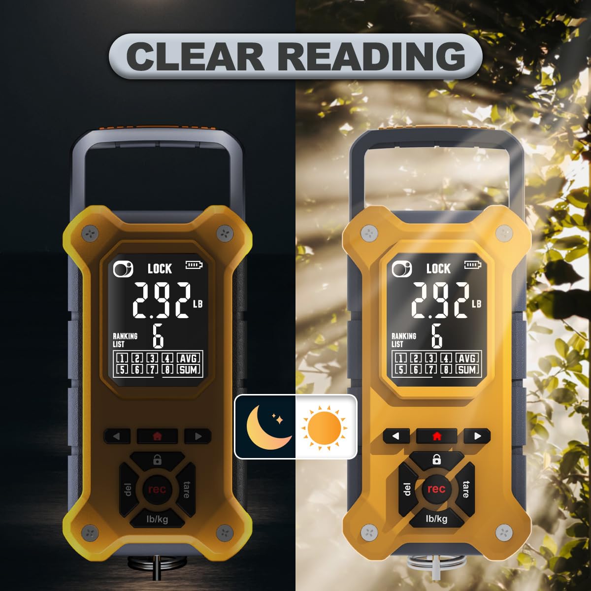 • 【Easy-to-Read Display】This fish scale comes with a reverse image LCD screen that's clear and easy to see, whether you're in bright sunlight or viewing from different angles. It also has a backlight, making it simple to read in low-light conditions.