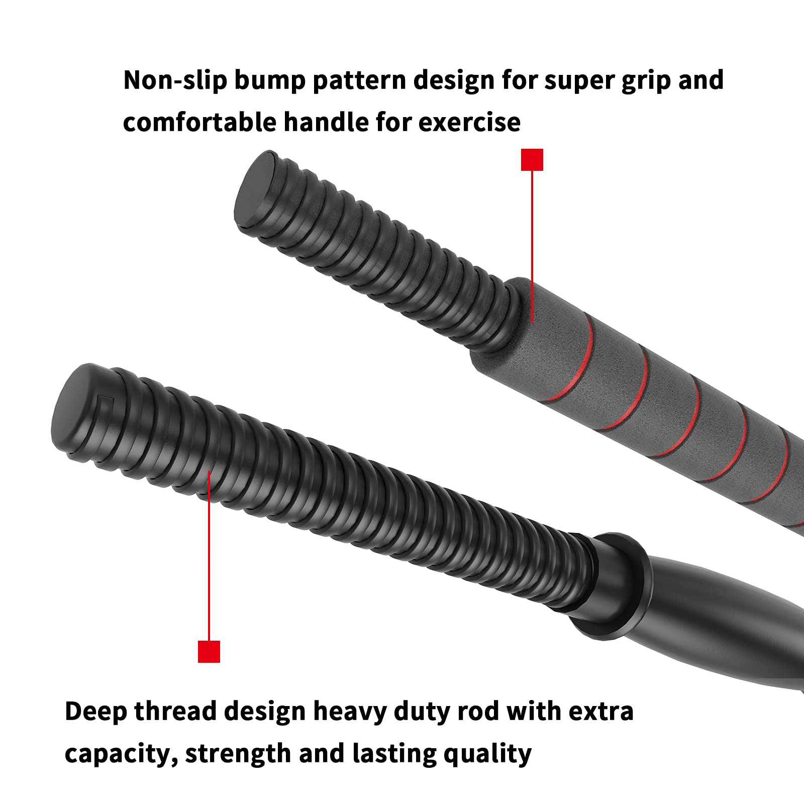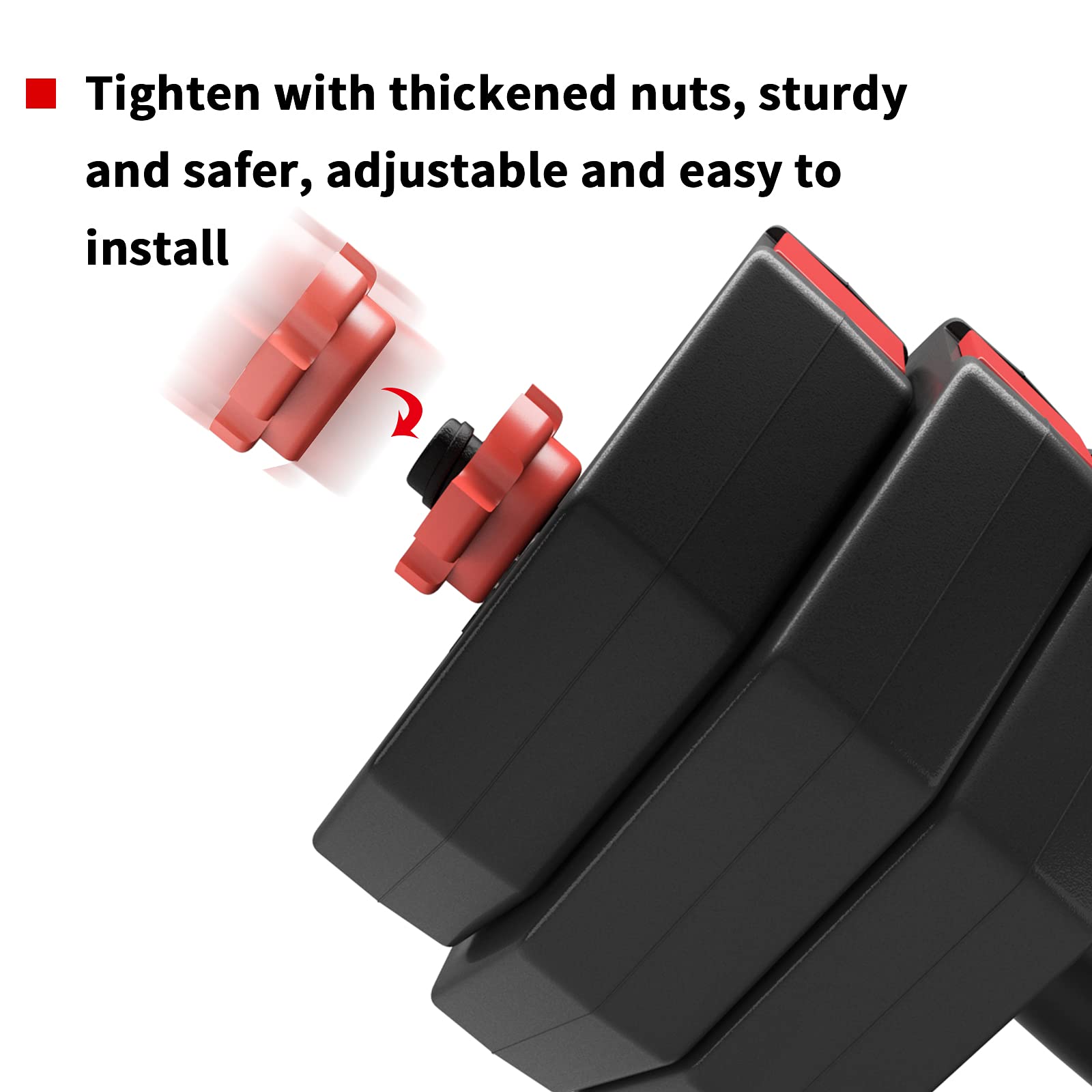 • ADJISTABLE DUMBBELLS SET: 66 pounds for two dumbbells (33 pounds each), comes in one package, with four 4.4-pound plates, eight 5.5-pound plates. Four pcs of screw collars. Two black main rods (17.3' long) and one red connecting rod (4.3' long).