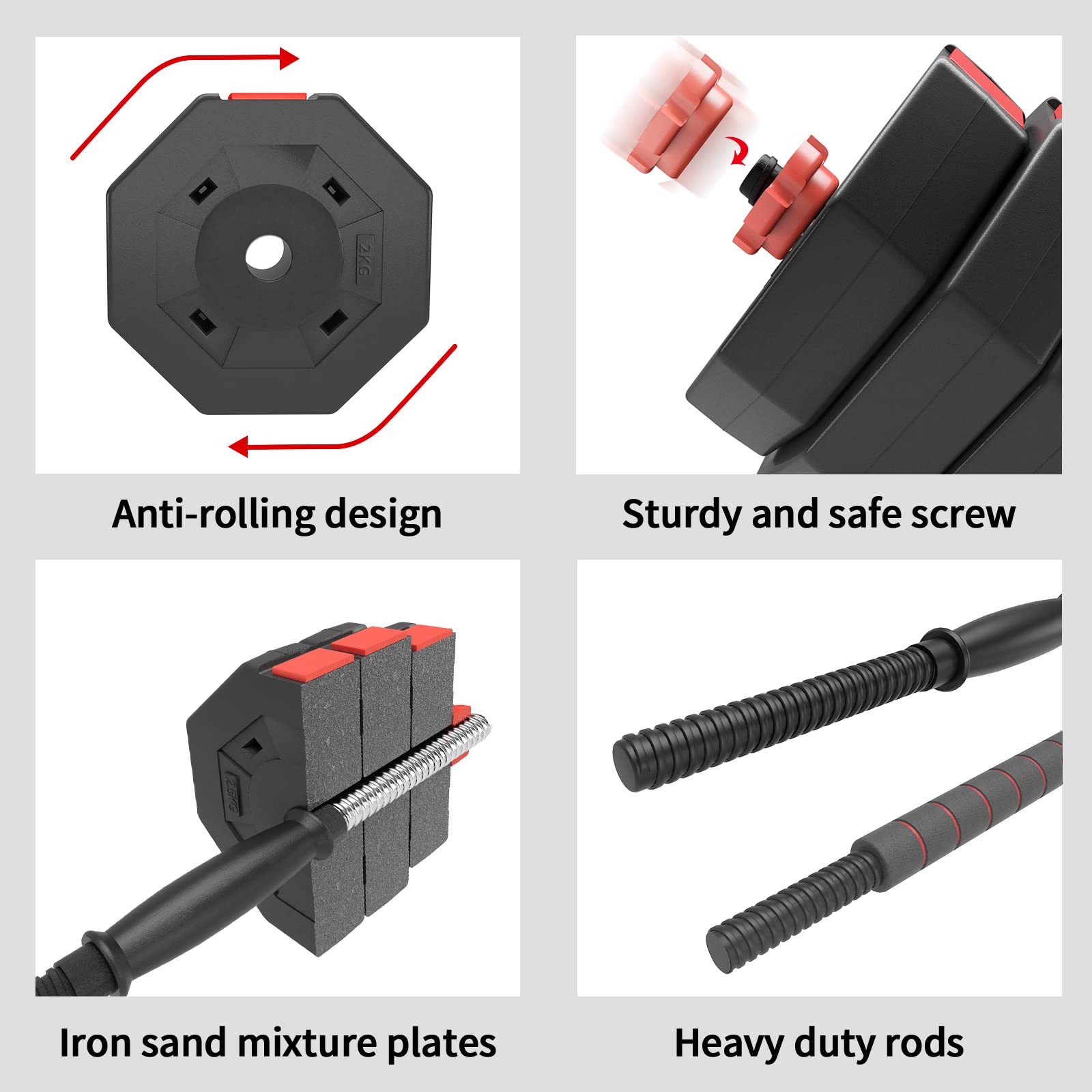 soges Adjustable Dumbbells Set, Iron sand mixture Octagonal designed Weights Dumbbells Set, Anti rolling Fitness Dumbbells HSYL001-30