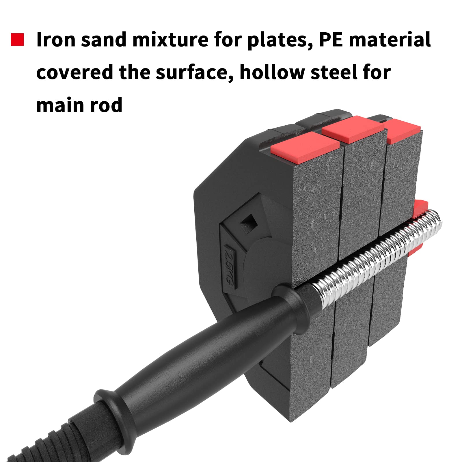 • Good Material: Iron sand mixture for plates, PE material covered the surface; Hollow steel for main rod. This dumbbell sets is suitable for home gym