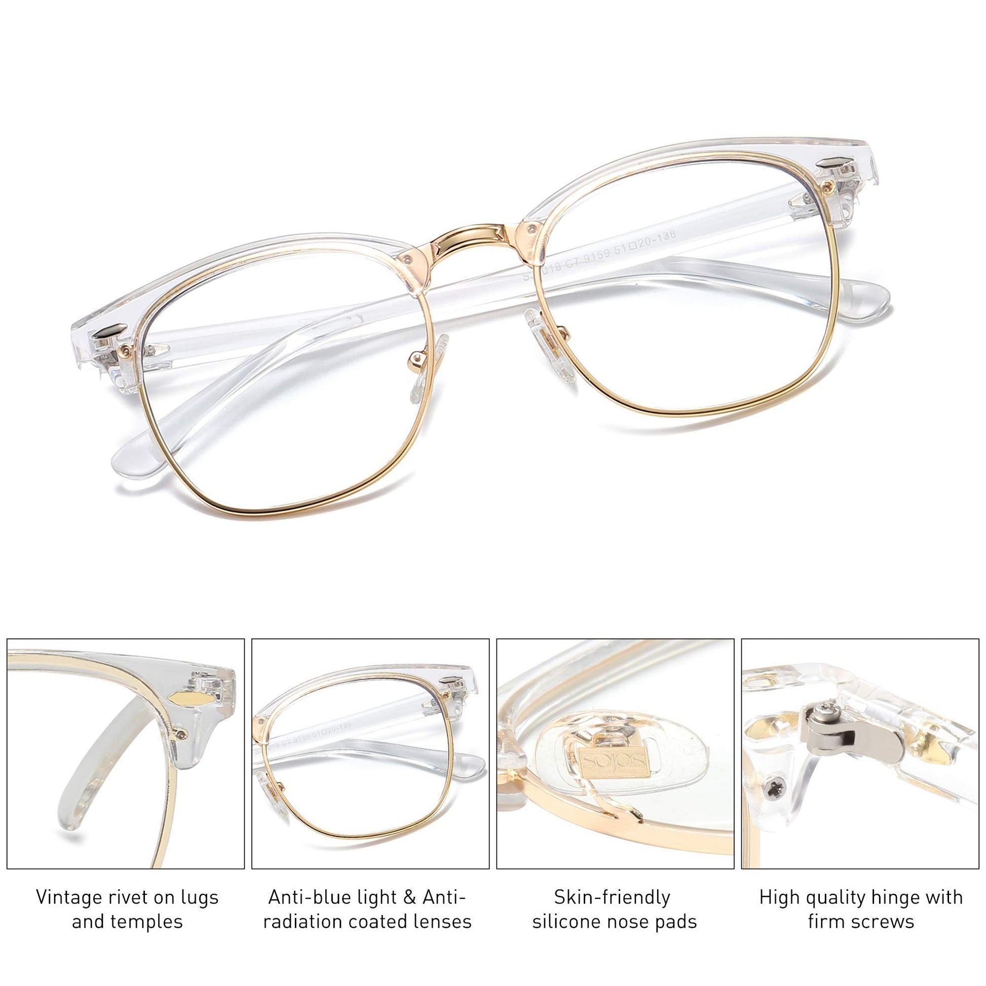 SOJOS Retro Semi Rimless Blue Light Blocking Glasses Half Horn Rimmed Eyeglasses SJ5018, Clear Frame/Gold Rim
