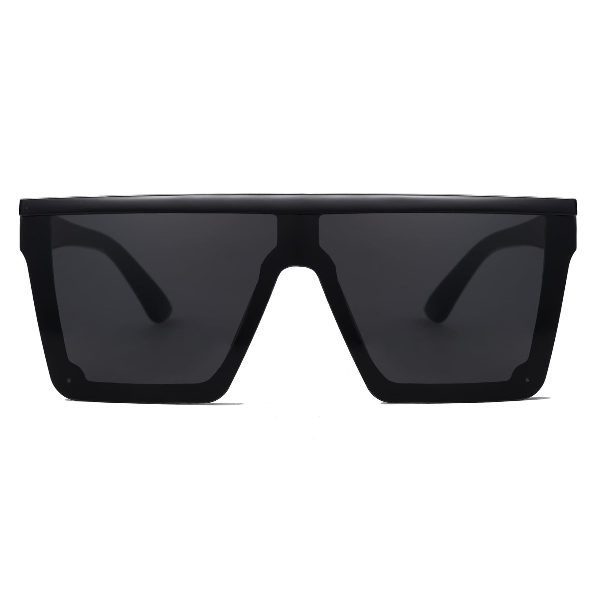 SOJOS Square Big Sunglasses Women Thick Frame Flat Top Mirrored Sunnies Shades Goggle Siamese Lens SJ2117 with Black Frame/Grey Lens