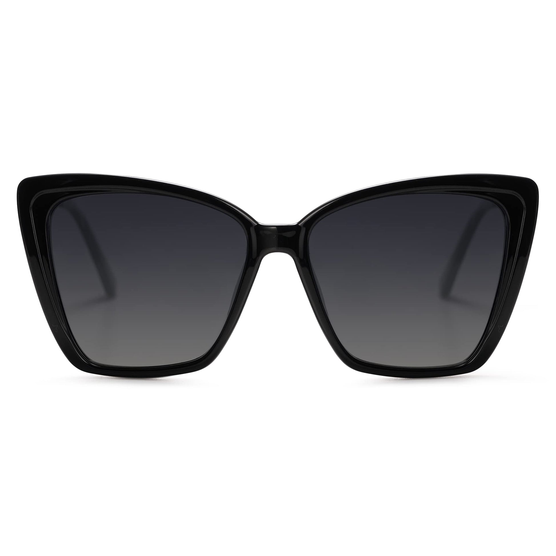 SOJOS Trendy Polarized Sunglasses For Women Retro Womens Oversized Square Cat Eye Sun Glasses UV Protection SJ2206 Black Frame Grey Lens