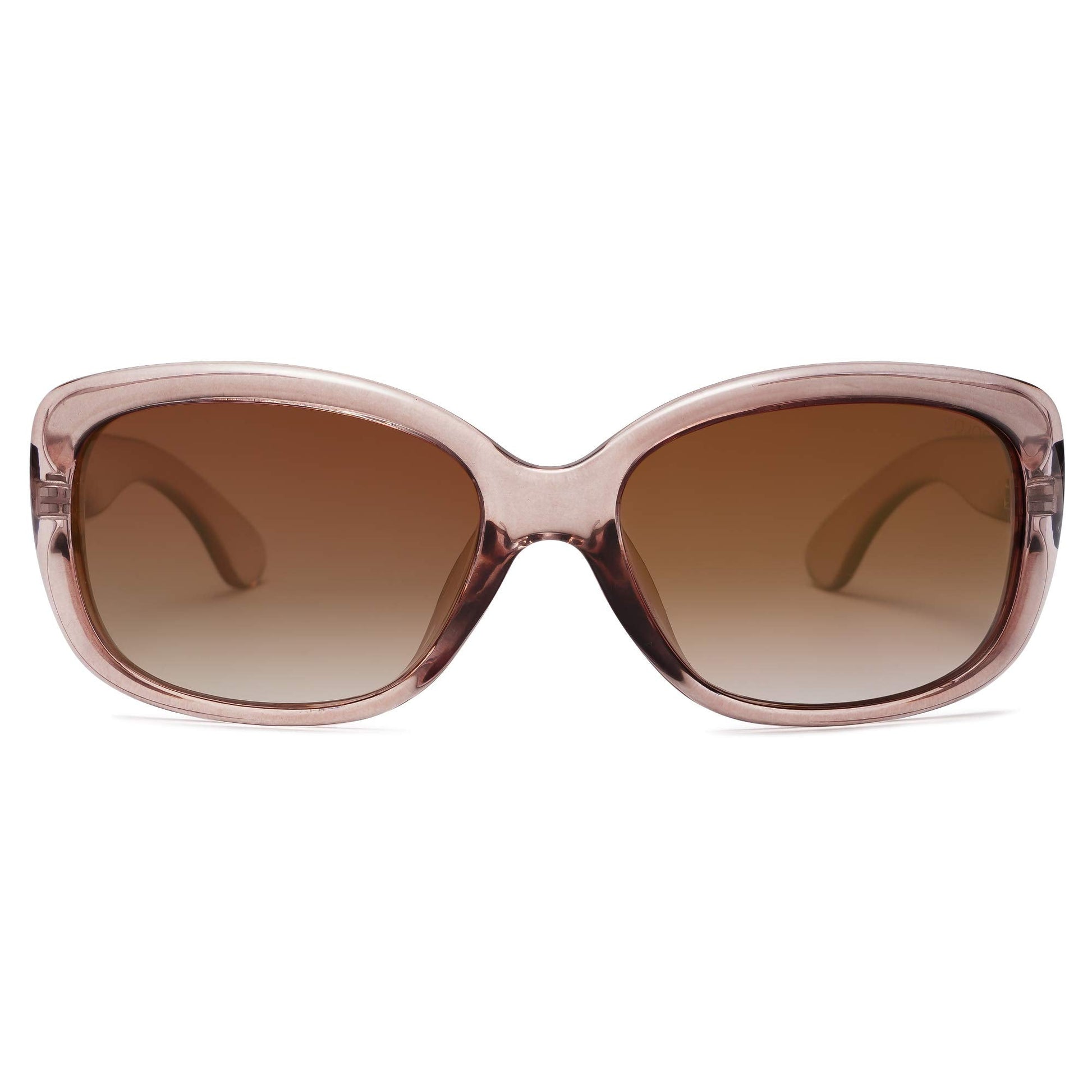 SOJOS Vintage Square Sunglasses for Women Polarized UV Protection Havana Frame SJ2111 with Transparent Brown Frame With Gradient Brown Lens