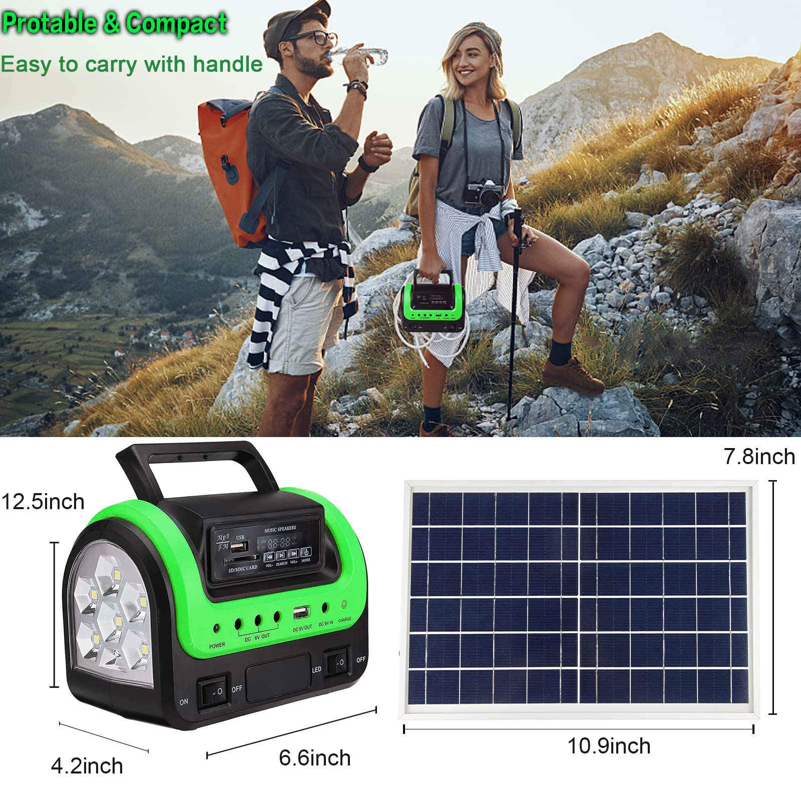 • 2 CHARGING WAYS Power Generator- Our outdoor generator provides 2 charging ways. 5W solar panel charging and AC charging. With and light bulbs, convenient to carry, Compact design, easy installation. Anti-dust, DC& USB output, safe and reliable. Integrated packing, easy transportation.
