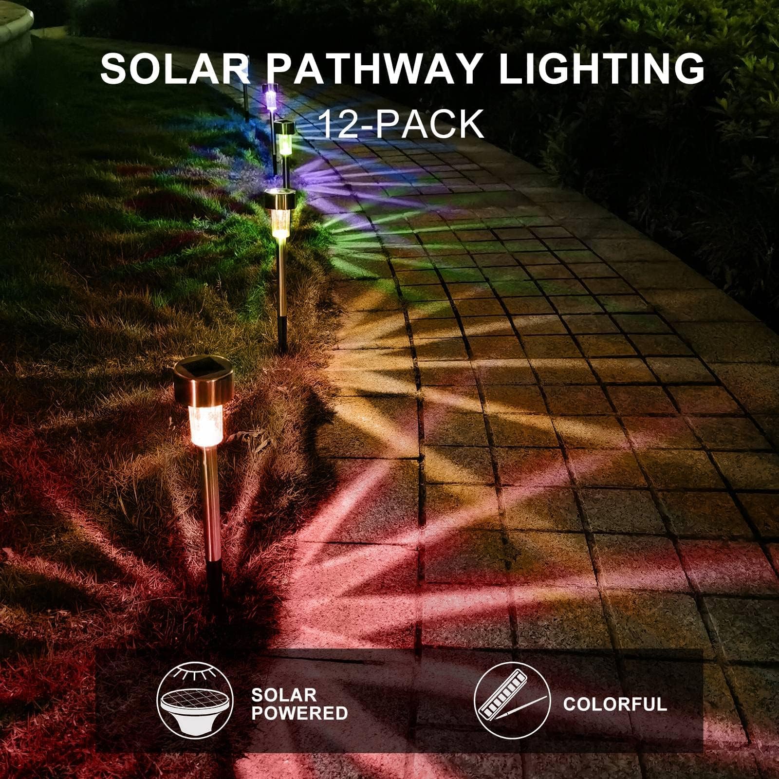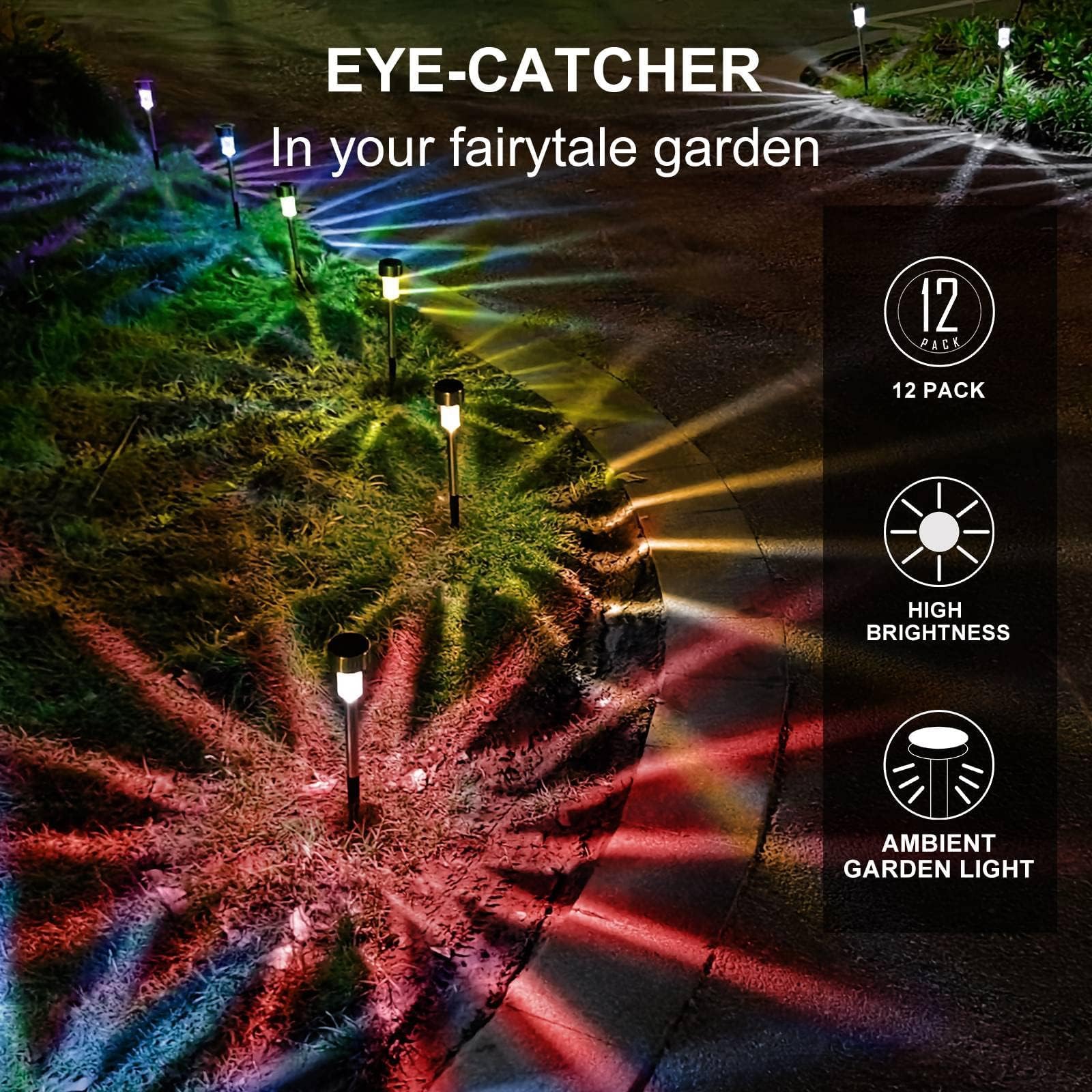 Solar Lights Outdoor Waterproof, Stainless Steel LED Landscape Lighting, Solar Garden Lights Solar Powered, Outdoor Solar Lights for Yard, Pathway, Walkway, Patio , Lawn - 12 Pack ( Multicolor )