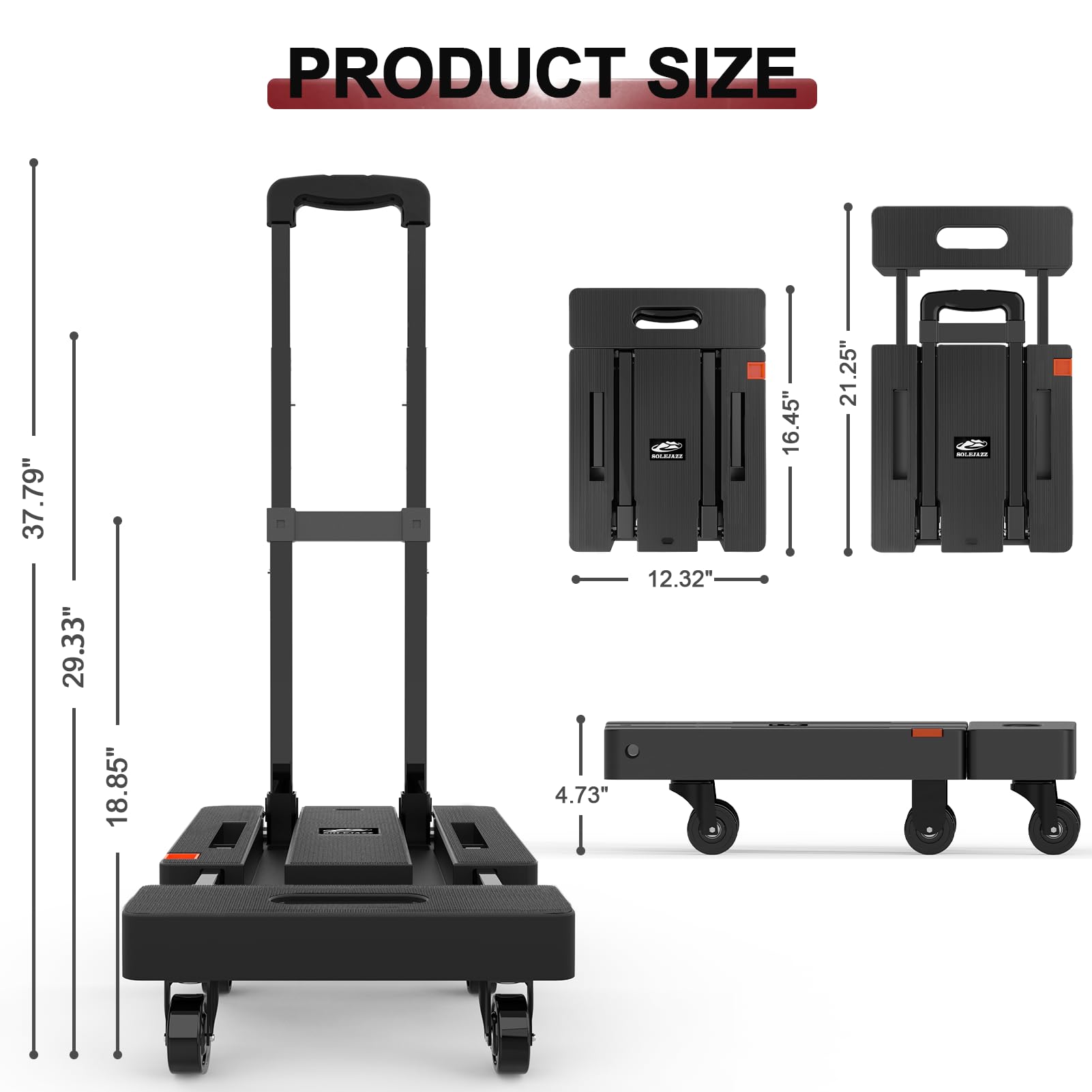 • 【Quick Fold, Compact for Easy Storage】: Folds down to just 16.45 x 12.32 inches, fitting easily in car trunks, closets, or under beds. Lightweight at only 8.6 lbs, this foldable dolly is portable and ready for everyday use