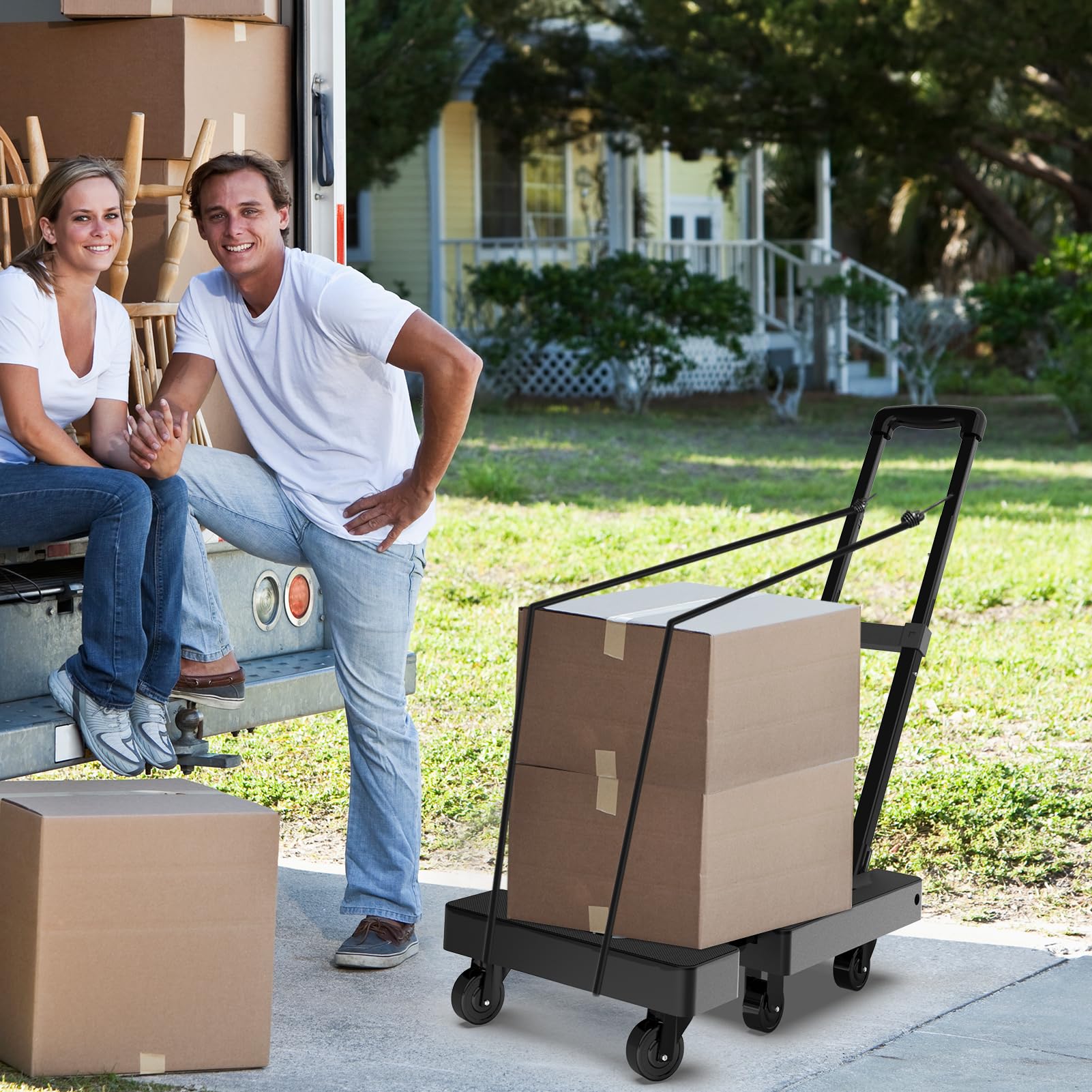 • 【500 lbs Capacity, Heavy-Duty & Easy to Use】: This folding dolly cart with wheels features a high-strength plastic frame and 6 double ball-bearing wheels, supporting up to 500 lbs. Great for furniture moving, warehouse deliveries, airport traveling or camping trips