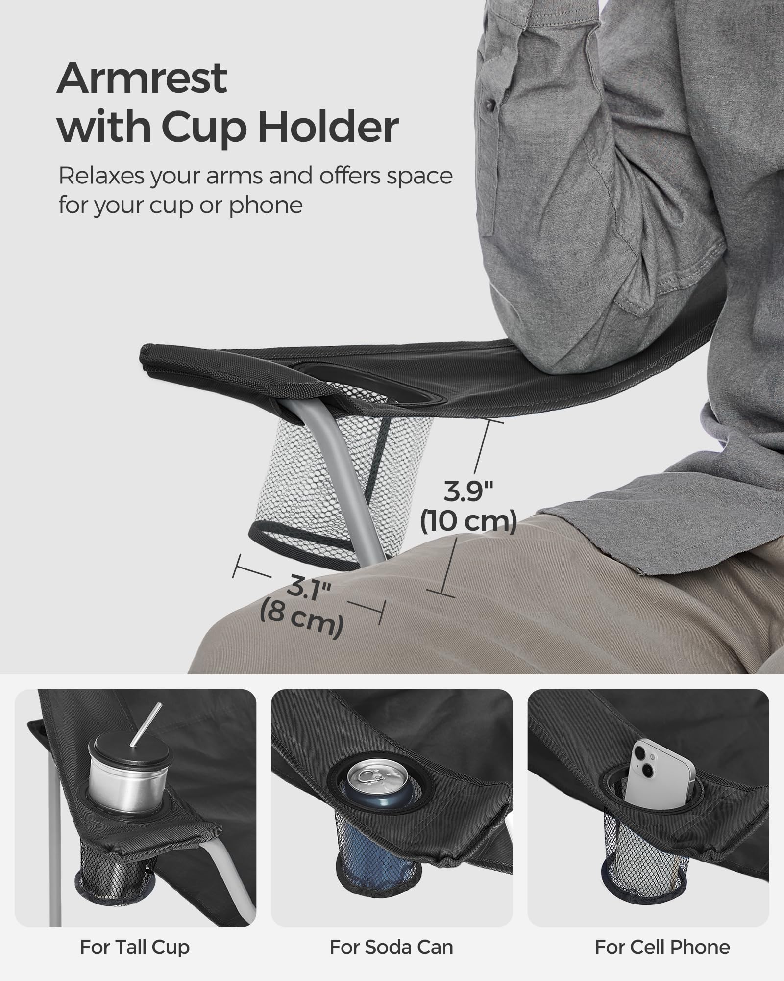 SONGMICS 2 Pack Folding Camping Chairs, Load 330 lb, Cup Holder and High Backrest, Heavy-Duty Structure, for Lawn, Garden, Fishing, Terrace, Black UGCB08BK