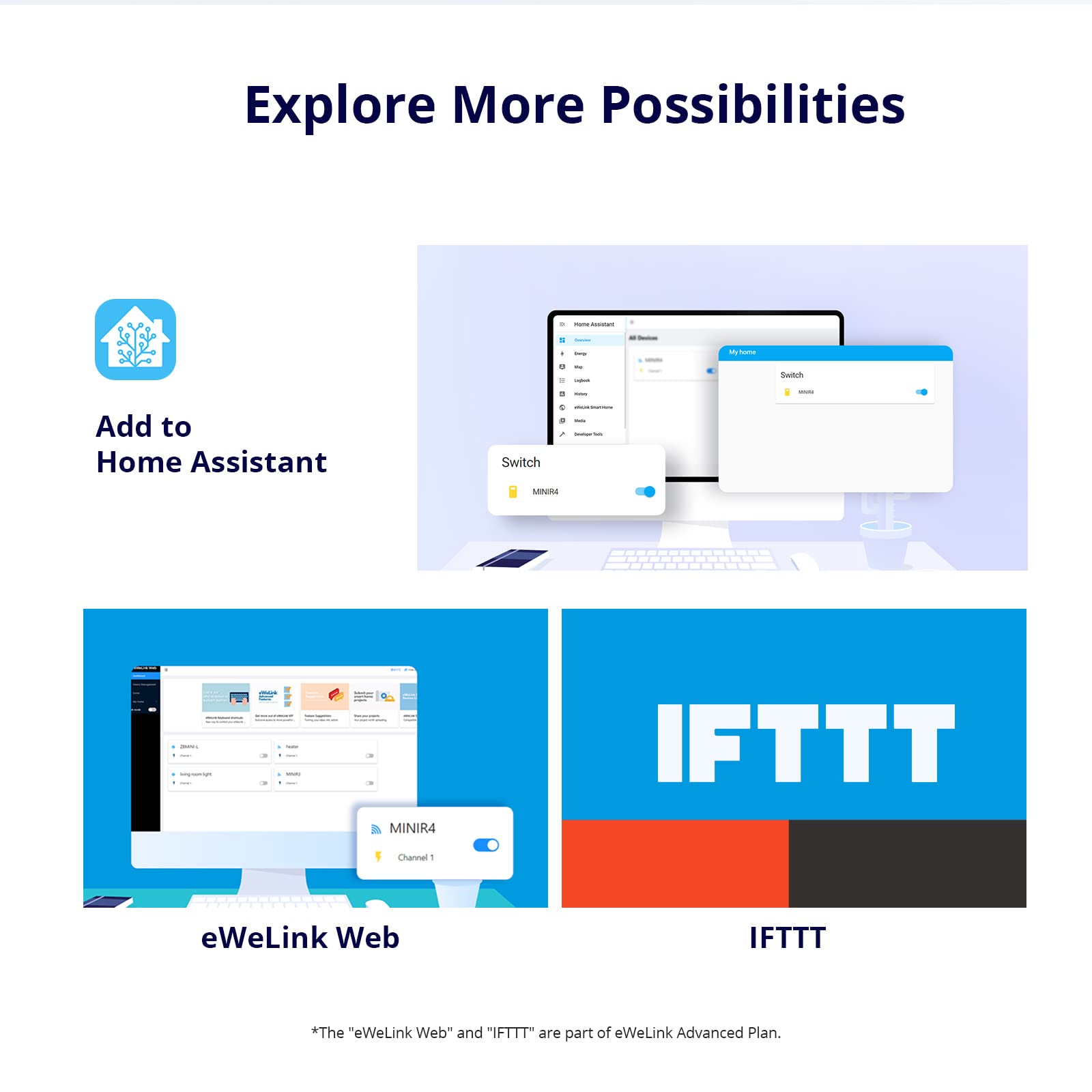 • 【eWeLink-Remote Control】MINIR4 is a smart switch with the gateway function of “eWeLink-Remote”. You can add “eWeLink-Remote” sub-devices, R5 and S-MATE, after pairing with MINIR4, both R5 and S-MATE can act as remote controllers to control MINIR4 locally through the eWeLink-Remote signal.
