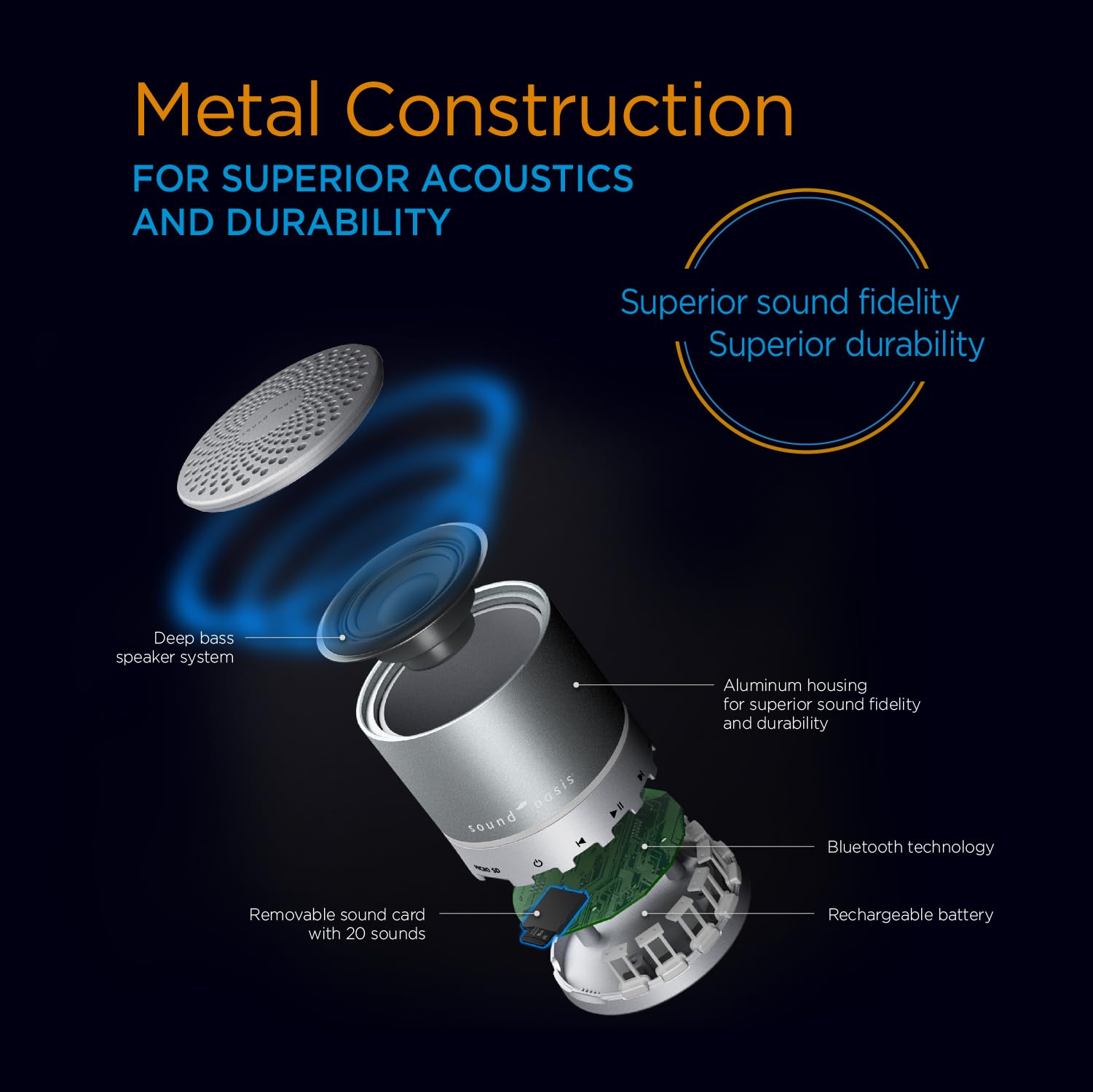Sound Oasis Bluetooth White Noise Machine – Portable Sound Machine with 20 Non-Looping Nature, Pink & Brown Noise Sounds, Tinnitus Masker for Sleep, Baby, Office & Travel, Rechargeable