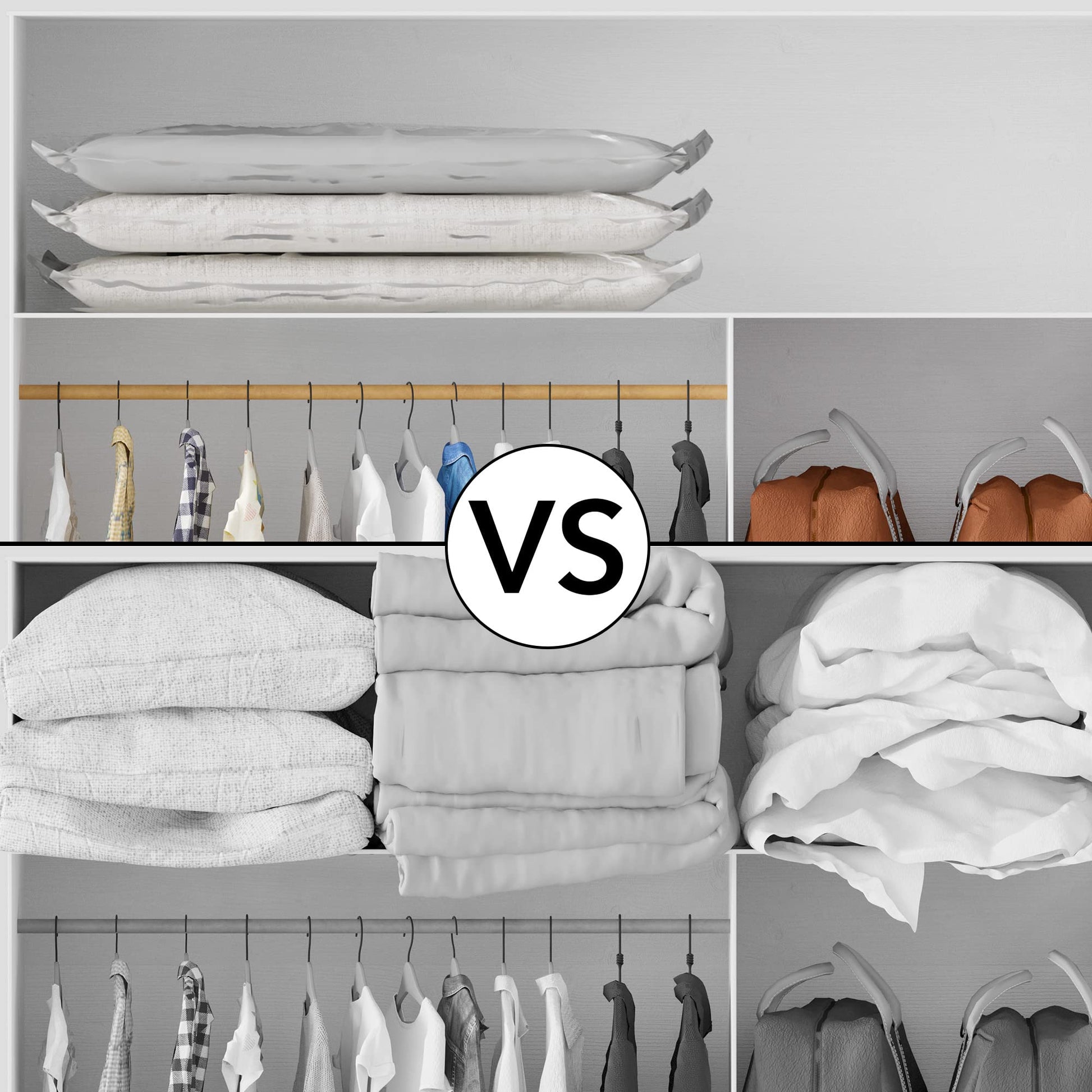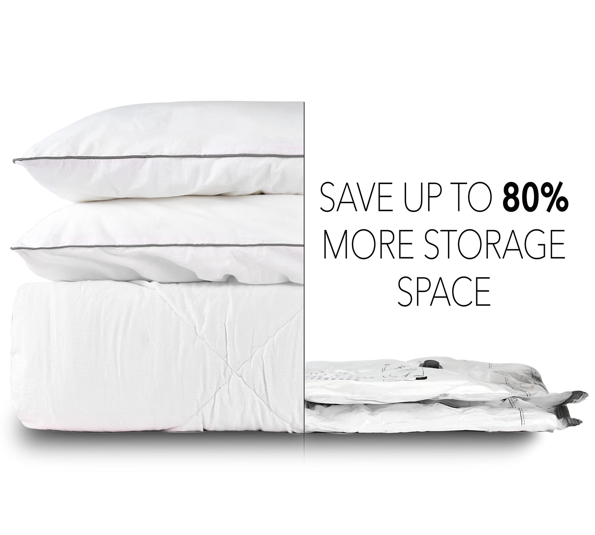 • Create Space: Squeeze and compress the air out of your bulky or seasonal belongings to compact and modular storage in wardrobe, closet, suitcase, or underbed