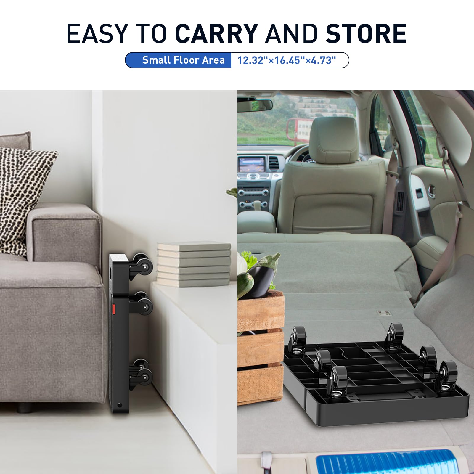 • 【Extendable Base Plate】- This folding luggage cart features an extendable loading base surface to hold larger-sized stuffs, provide you extra space to place the goods, no need to worry the box is too big.