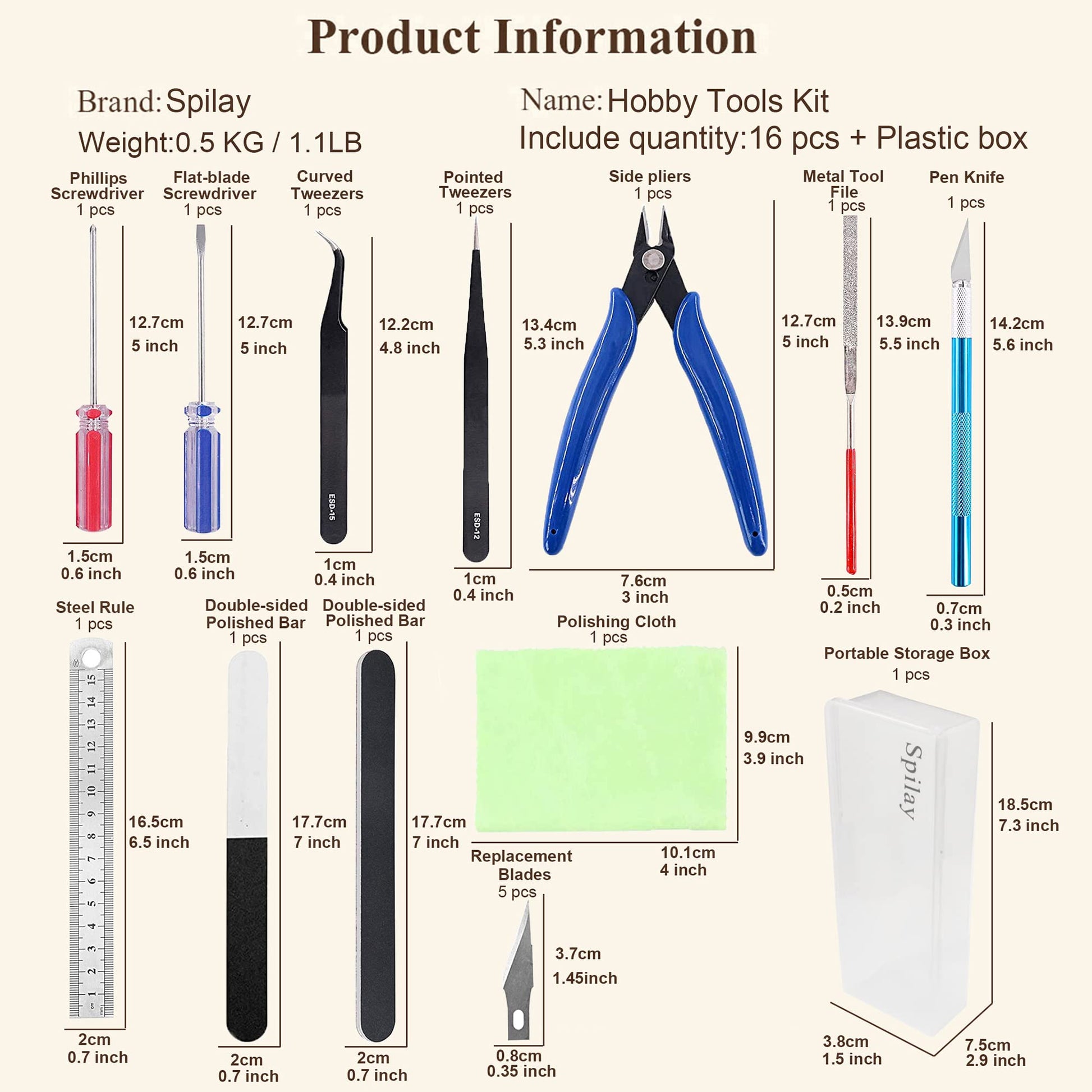 Spilay 16 Pcs Hobby Building Model DIY Tool Kit, Modeler Basic Miniature Handmade Craft Tools Set for Dollhouse Miniature Building