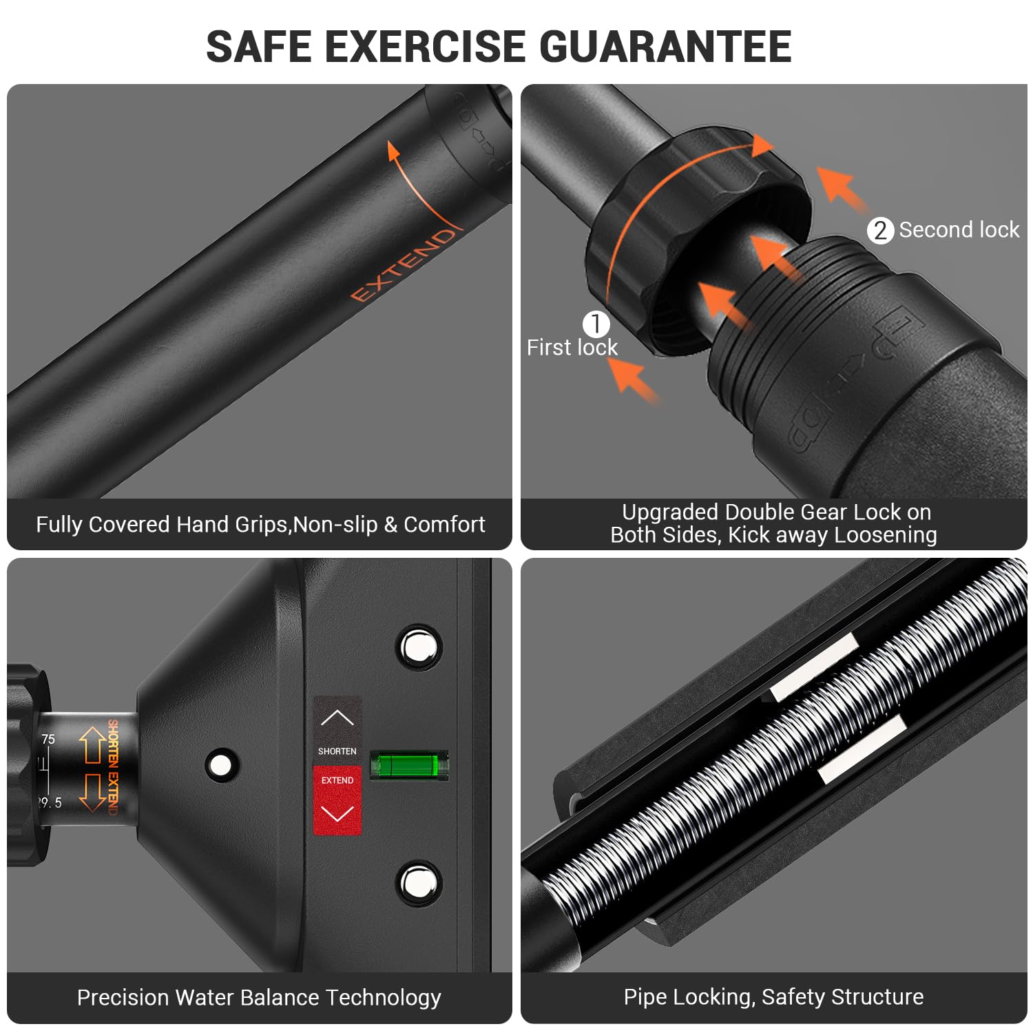 • Upgraded Mechanic Lock System: This push-up bar features a new 360-degree rotatable dual gear lock on both ends to protect the bar from loosening. The doorway exercise bar has passed extensive testing, ensuring safety and sturdiness for confident use