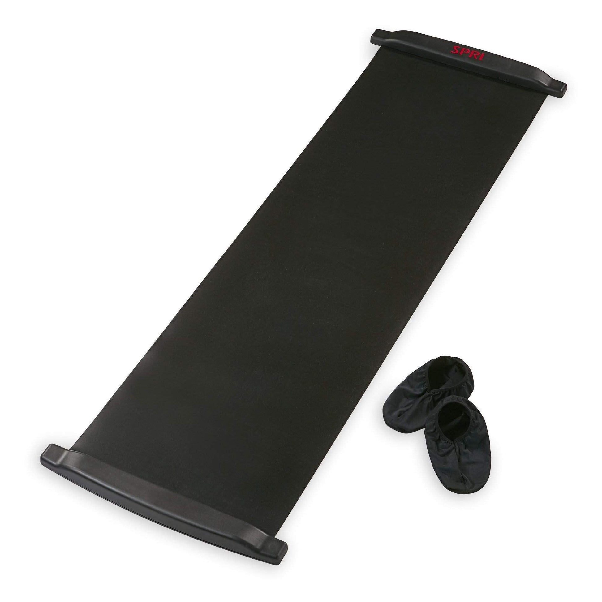 Details: The SPRI Slide Board is a great tool for someone looking for a minimal impact exercise that is light on the knees and joints, but with high intensity to tone your upper and lower body, abs & glutes. The PVC slide board glides with ease and features bumpers on each end for extra safety and security while sliding. Slide board (71'L x 20'W) rolls up for easy storage in a 32' x 11' mesh carrying bag. Slide training can be used in a variety of exercises for improving balance and stability. Includes a pair of over-the-shoe booties (One size fits most - 11' x 6'), carrying bag with strap and an exercise guide to help get you started!