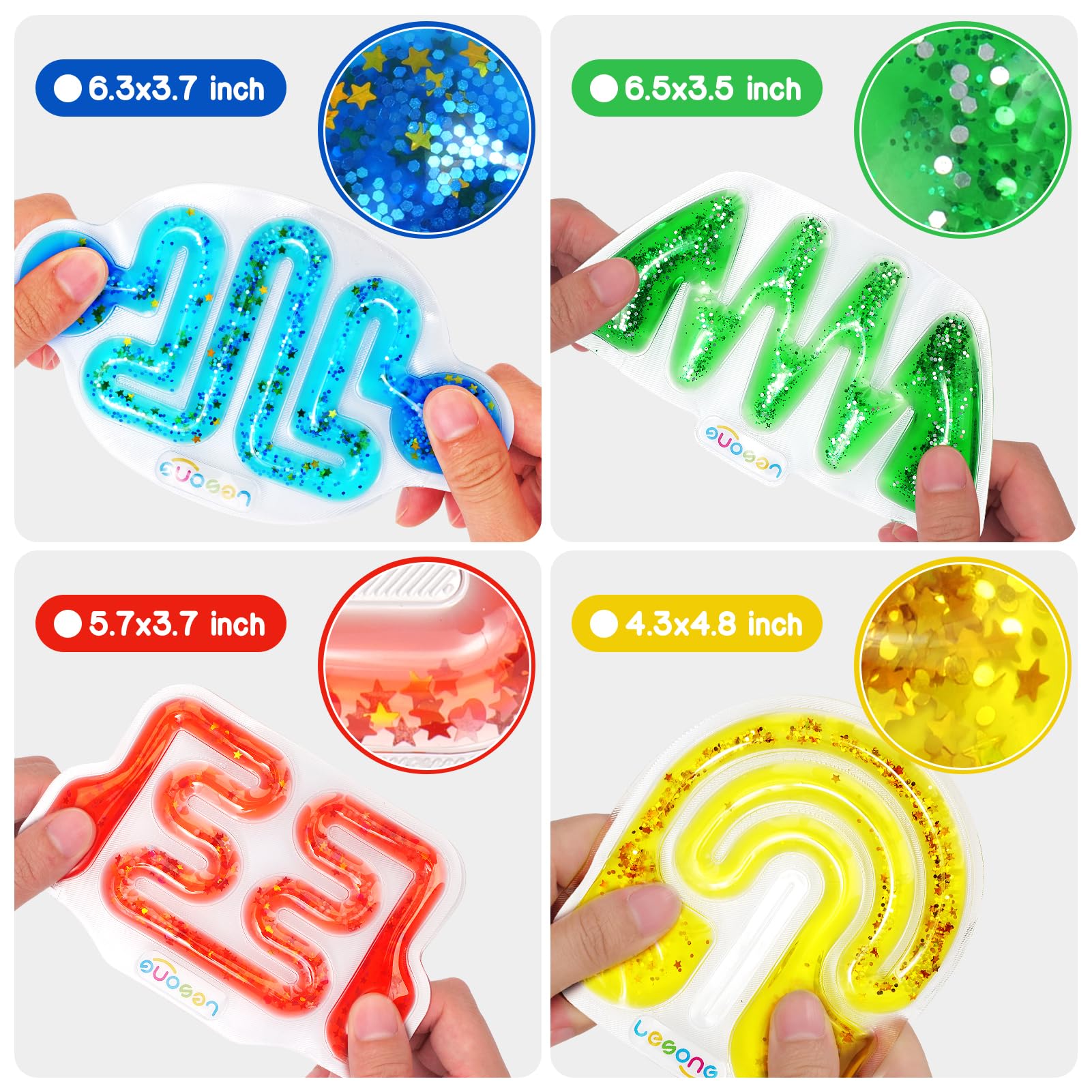 • Squishy Fidget Sensory Toys: LESONG Sensory Tubes! These tubes not only have a twisted maze-like design, but they are also filled with a one-of-a-kind mixture of goo, glitter, and balls that rush and gush back and forth with every squeeze. Perfect for both kids and adults, these sensory tubes provide a calming and satisfying sensation that helps reduce anxiety and stress. Let the LESONG Sensory Tubes be your go-to choice for a delightful and soothing sensory experience.