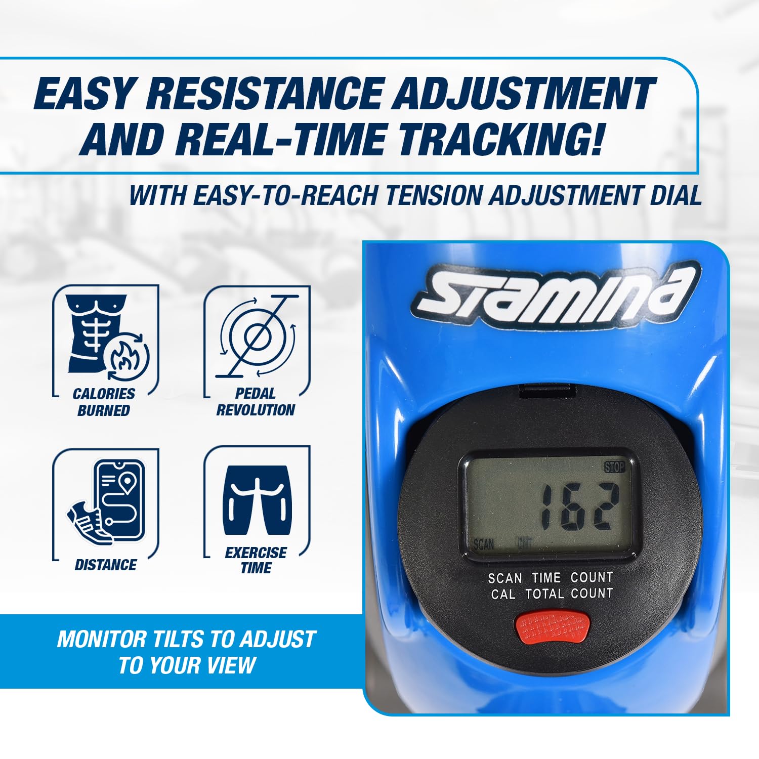 Stamina Mini Exercise Bike with Smooth Pedal System - Portable Pedal Exerciser - Cardio Equipment Fitness Bike - Stationary Bike for Home Workout - Blue