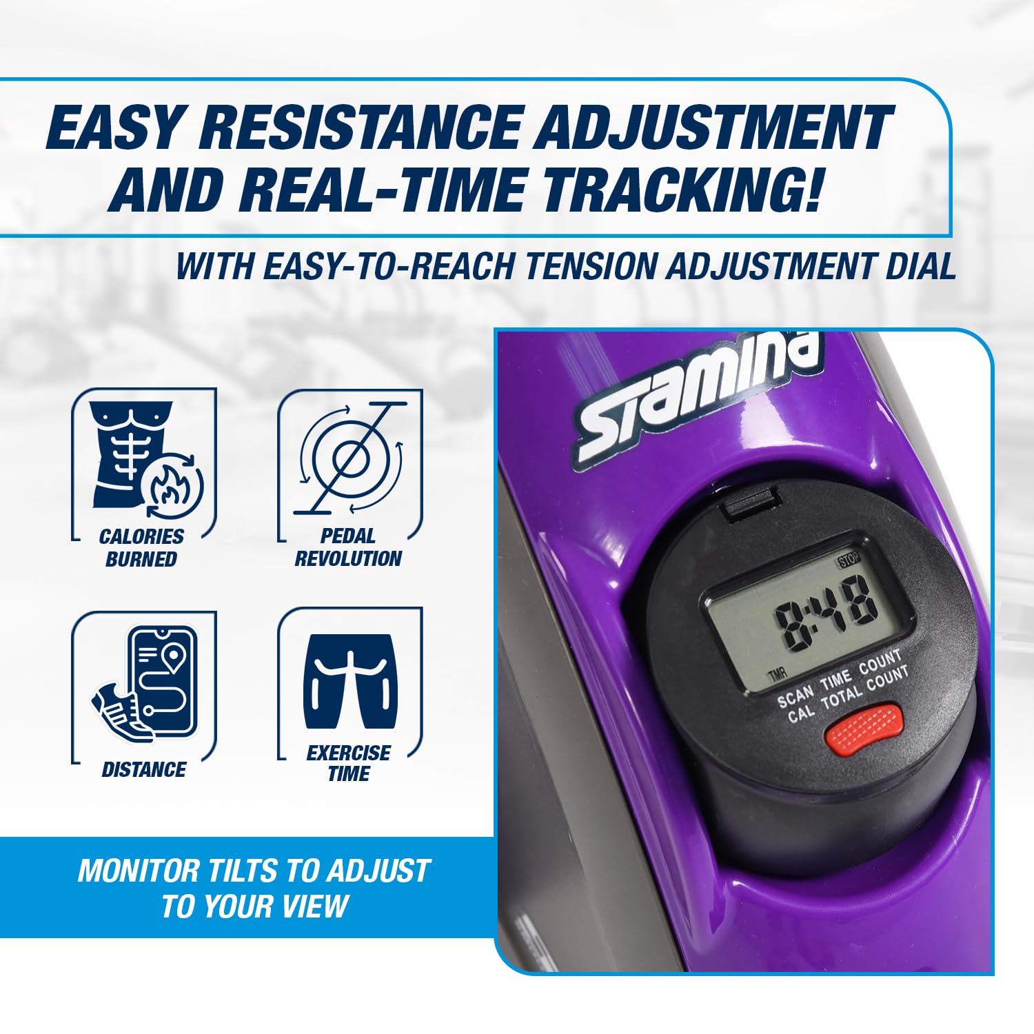 Stamina Mini Exercise Bike with Smooth Pedal System - Portable Pedal Exerciser - Cardio Equipment Fitness Bike - Stationary Bike for Home Workout - Purple