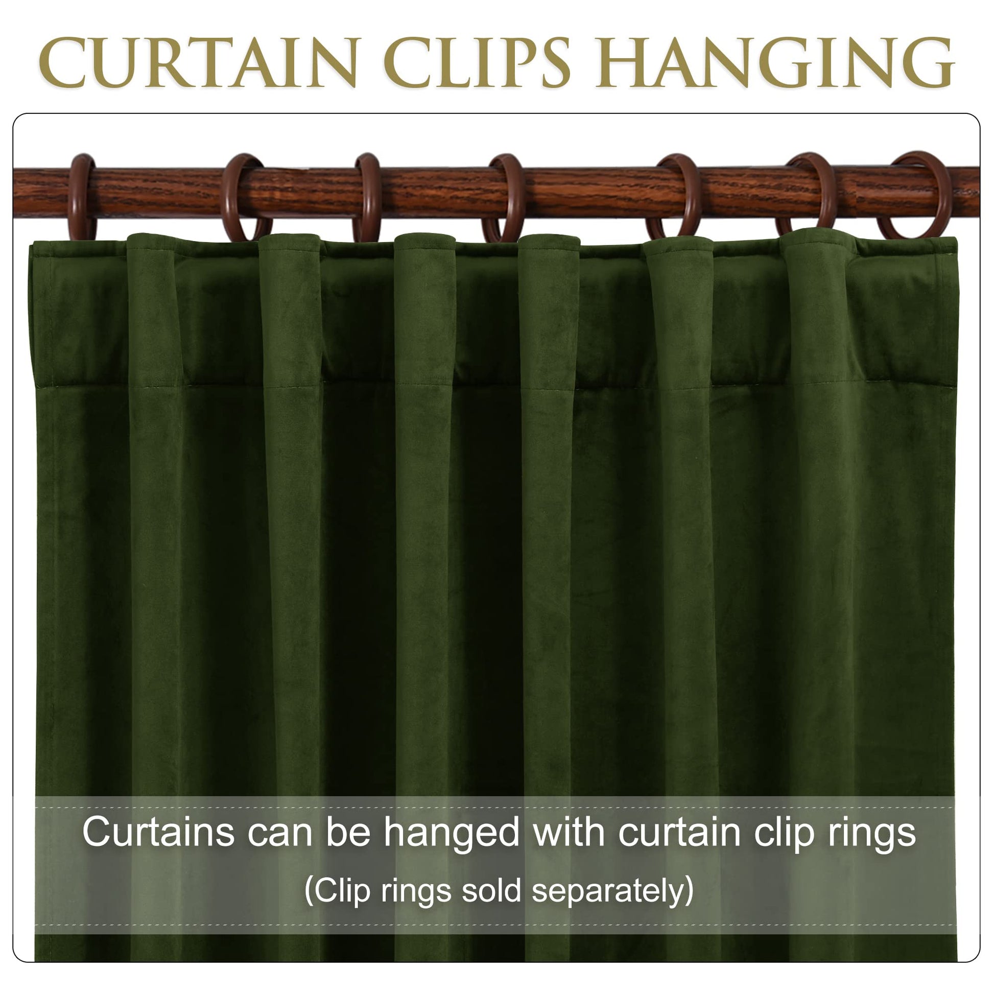 StangH Moss Green Curtains 108 inches Long - Luxury Velvet Room Darkening Sliding Door Drapes Thermal Insulated Soundproof Room Dividers for Closet, W52 x L108, 2 Panels