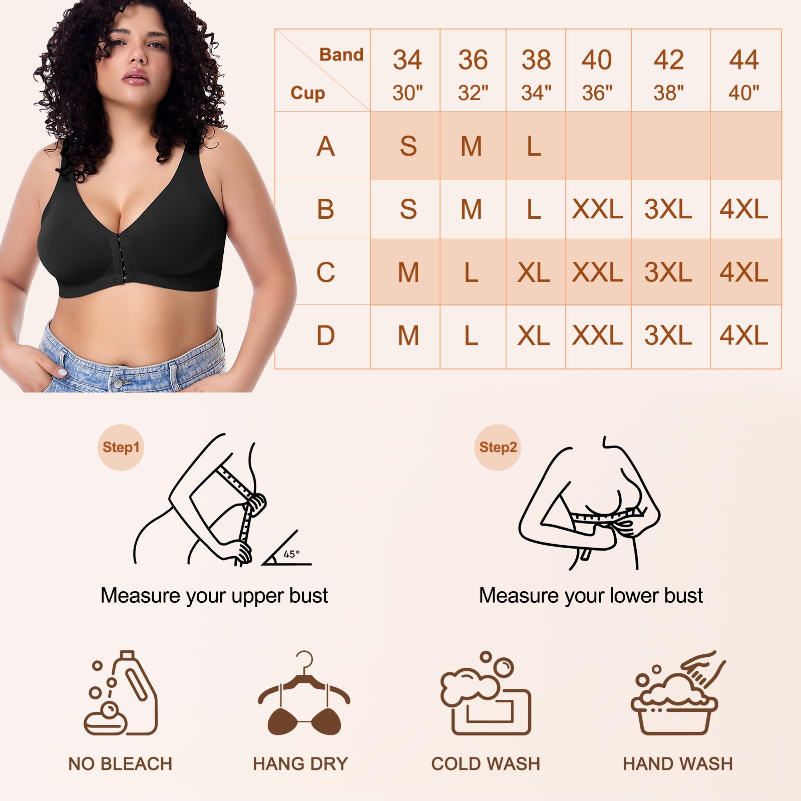 • Front Close Design for Easy Wear: Our Front closure bras with adjustable 2-level, 5 rows front easy-on hook closure for easy wear, convenient for the olders and those who dislike back hook.