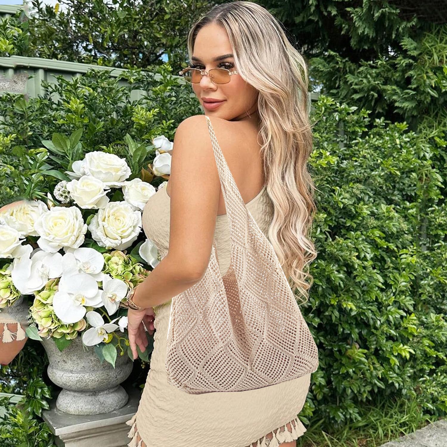 Stizimn Crochet Mesh Beach Tote Bag Shoulder Bag Handbags Knitting Hollow Summer Bag Hobo Bag Aesthetic for Women