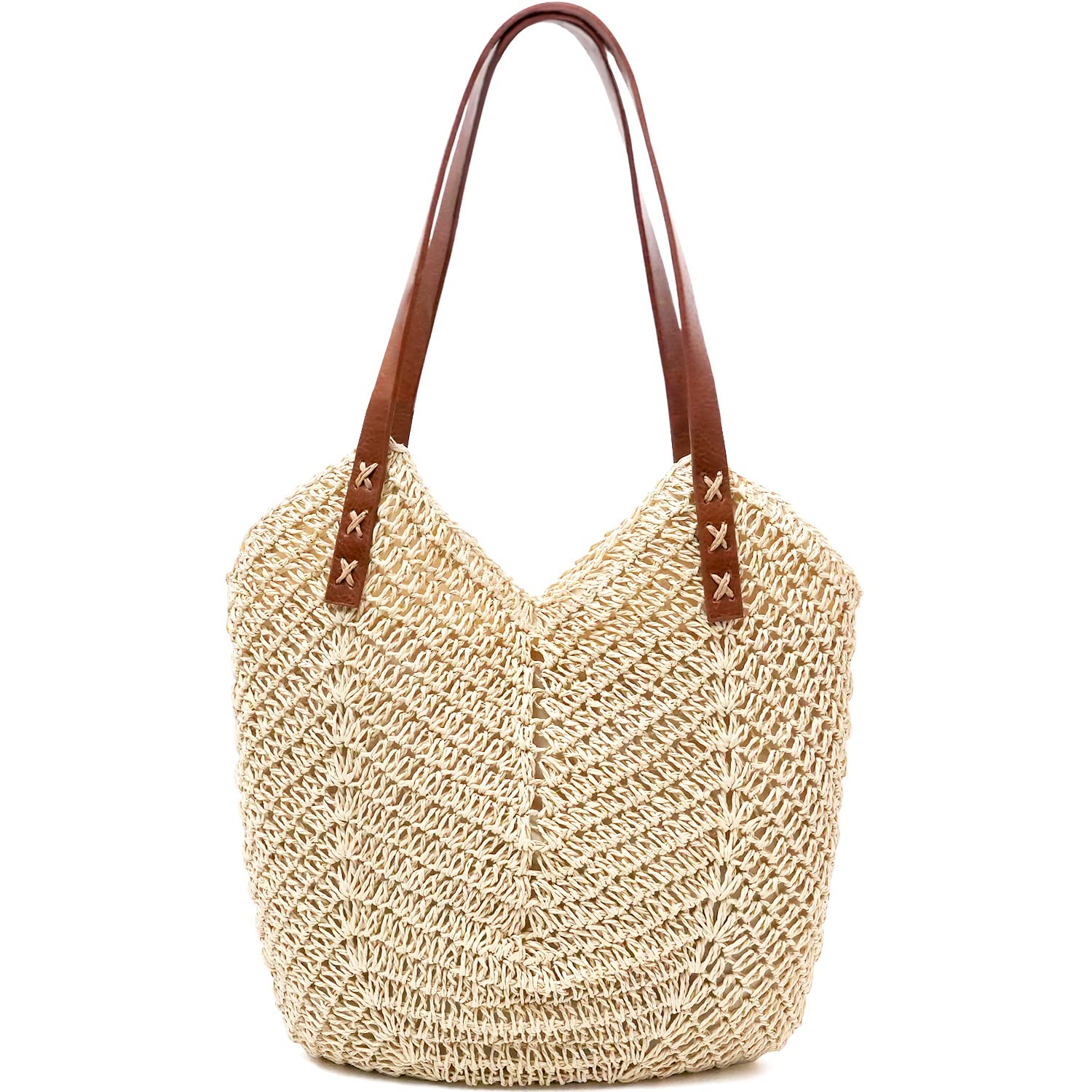 Straw Beach Bag for Women Large Straw Tote Bag with Zipper Summer Woven Bag Travel Straw Shoulder Bags for Vocation