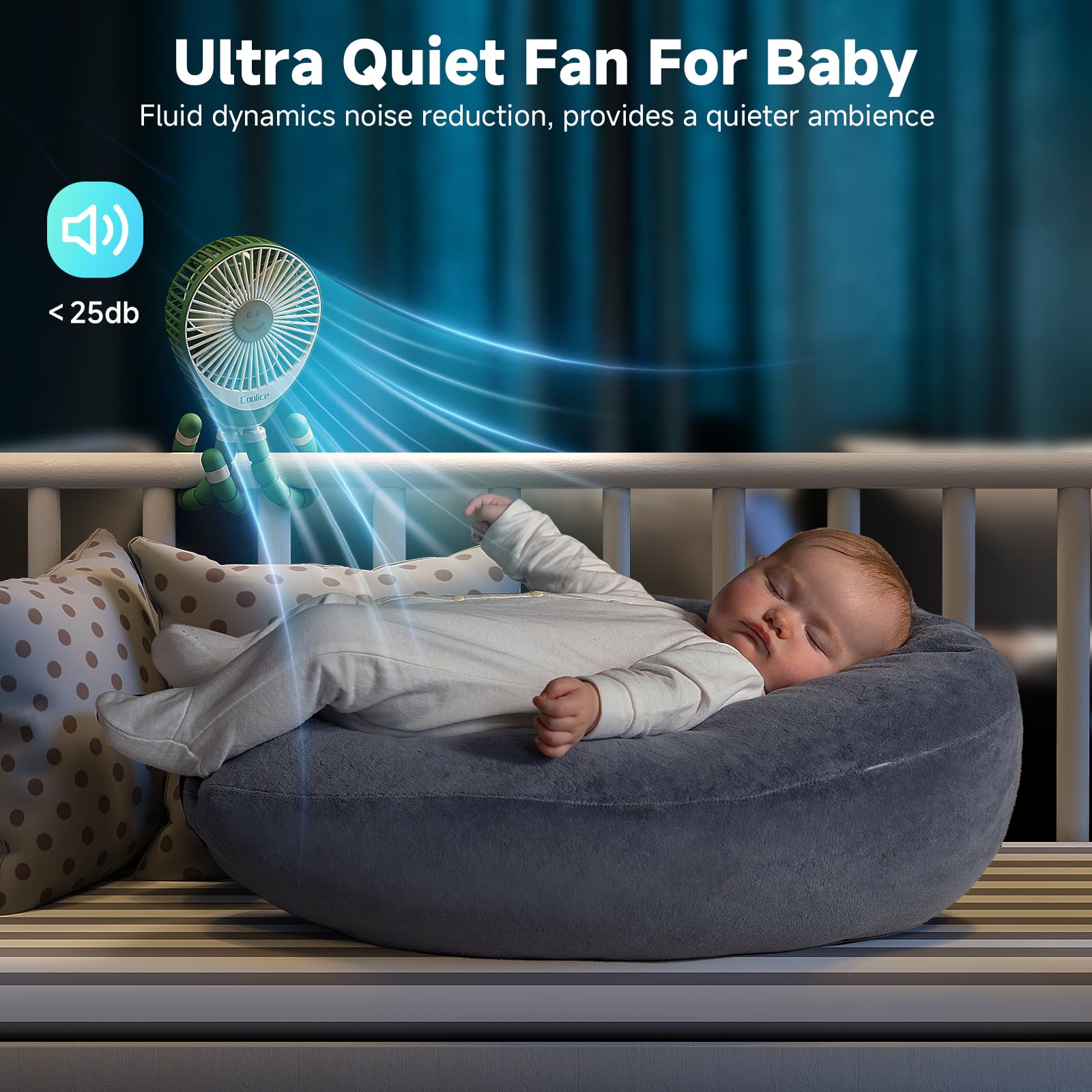 Stroller Fan Clip on for Baby, 30Hrs Removable Fan for Strollers and Car Seat, 3 Speeds Baby Stroller Fans, Rechargeable Portable Fans for Strollers with Flexible Tripod for Beach, Hiking and Camping