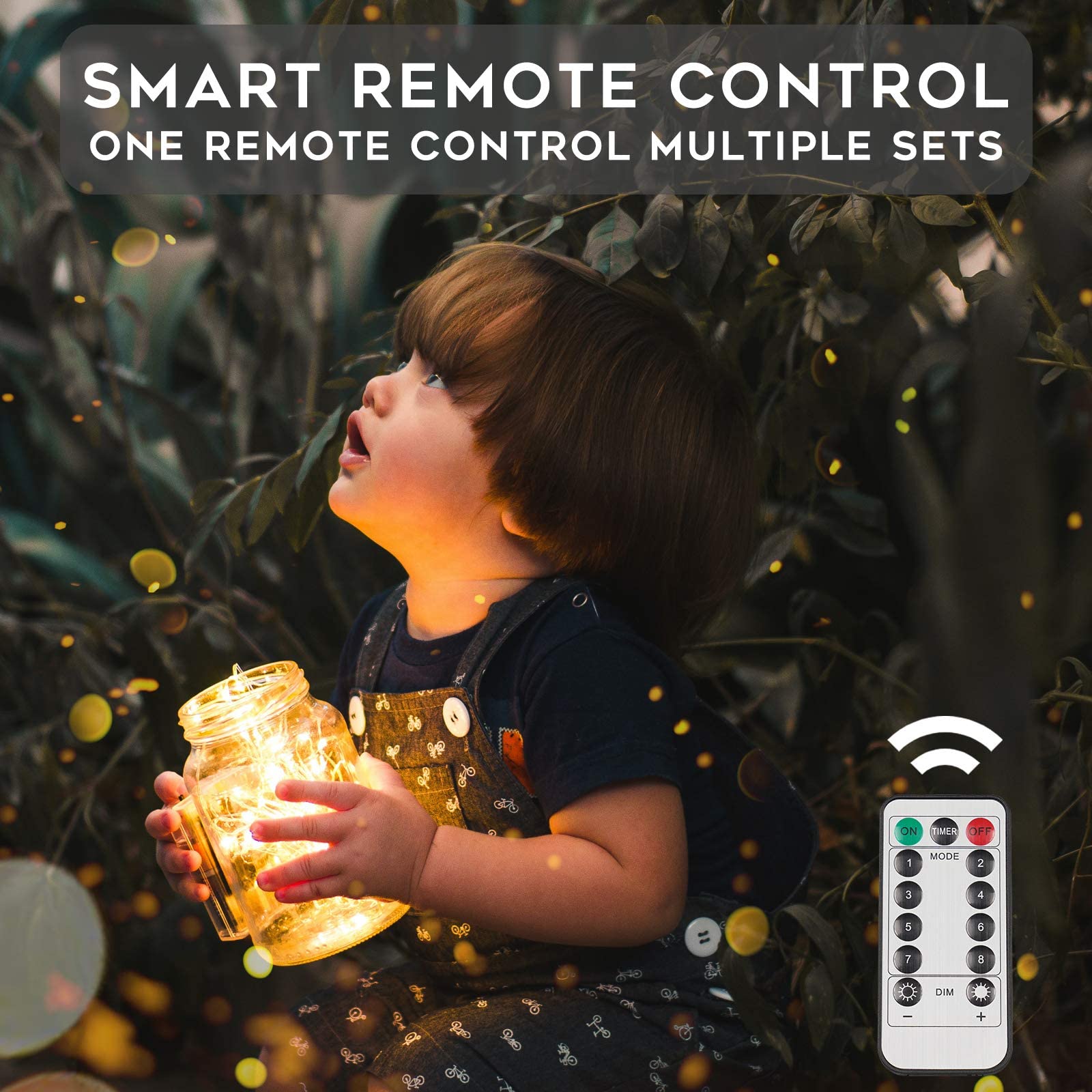 • REMOTE CONTROL FAIRY LIGHTS: This multifunctional warm string lights are super convenient, and enables us to switch eight flashing modes, and adjust the brightness quickly. Additionally, the timer function allows us to set up on/off time for 6hrs on, 18hrs off. The twinkle lights will turn on automatically by settings, helping us to create a magic light show in the future.