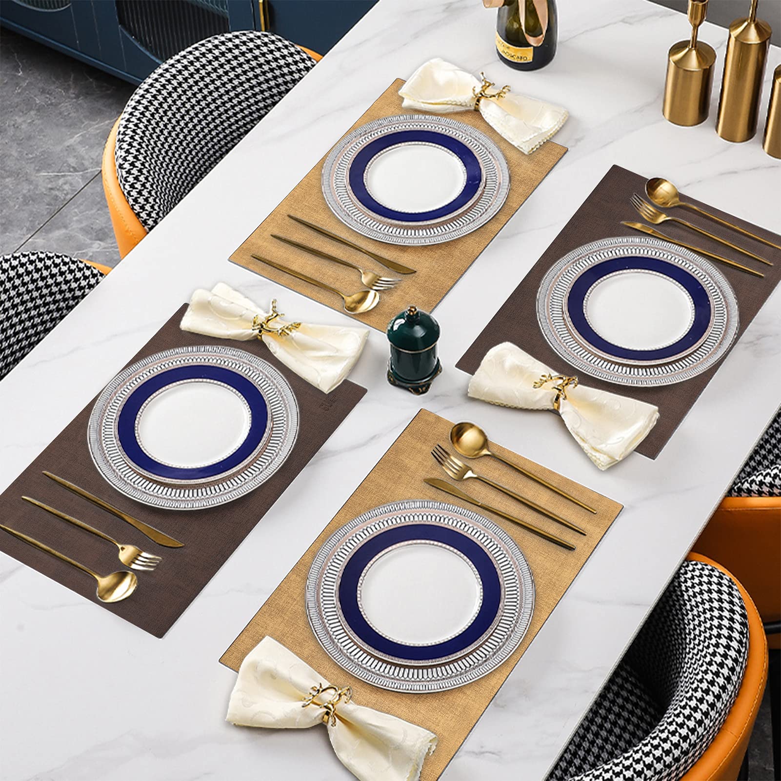 • HEAT- AND WATER- RESISTANT - This simple yet eye-catching design tablemats features an elegant aesthetic that can insulate up to 194°F (90 °C). You also don't need to worry about knock over a water glass. It's heat- and water-resistant function makes them ideal for protecting your table's surface from hot dishes and liquid spills.