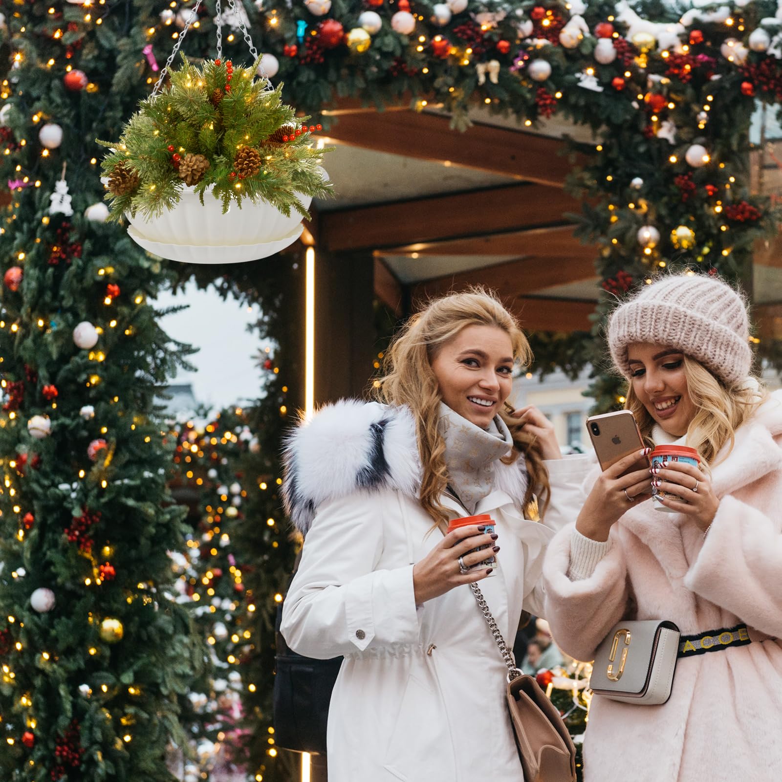• Material: Pots are made of durable plastic with a matte imitation pottery surface. Metal chains are coated to prevent rusting.