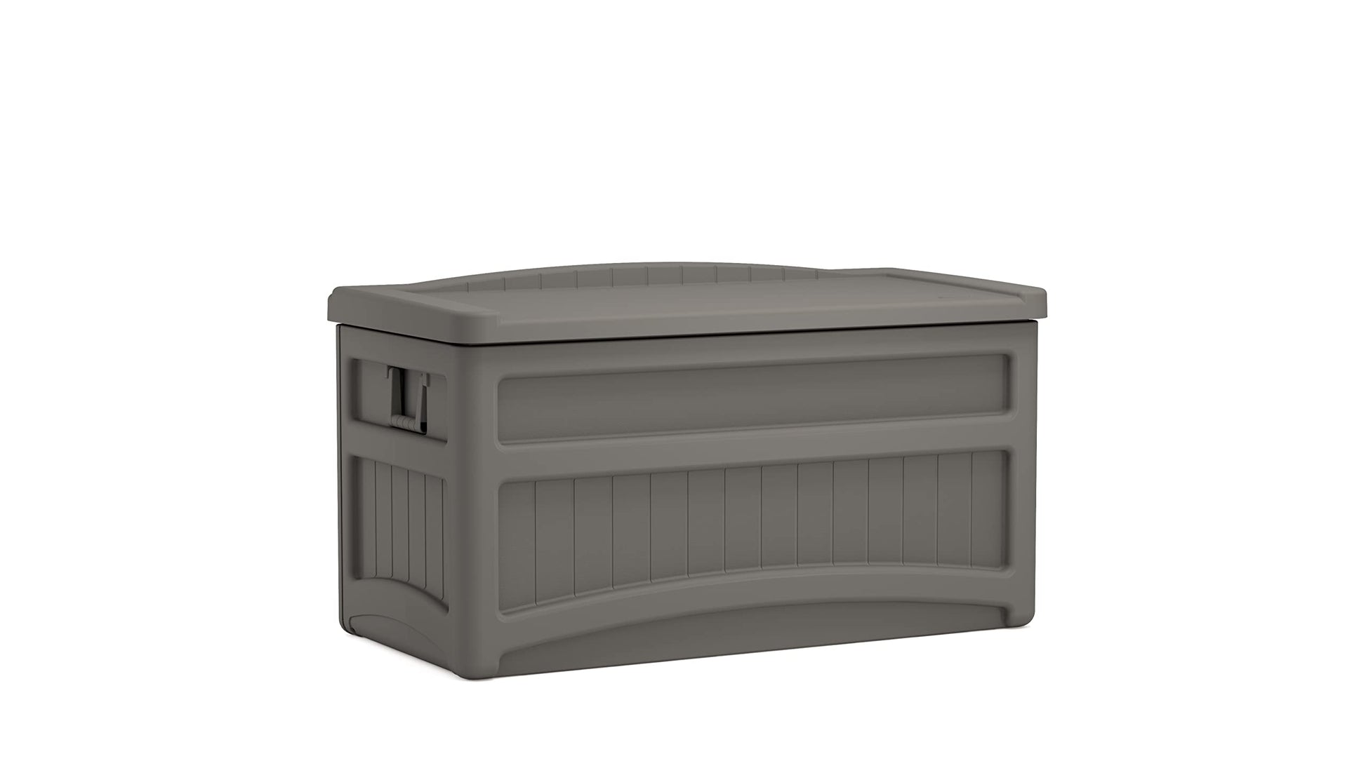 Details: The Suncast Deck Storage Box is an attractive and highly versatile solution for use throughout your home and yard. The chest design and hinged lid allow for easy access to your tools and accessories. Use it on your deck to stow away patio cushions, gardening tools, and grill accessories, or in your house to store boots, gloves, hats, and more. Constructed with durable poly resin, this container is built to last. The weatherproof body will resist fading, while rain water flows off the box without pooling to keep your belongings dry. With a holding capacity of 73 gallons (23.62' x 46' x 25.5'), the deck box is compact and space-efficient, easily tucked away in your laundry room or garage.Suncast takes pride in helping customers enhance their indoor and outdoor spaces with quality products that are stylishly designed. You take pride in creating a beautiful environment. We take pride in keeping it that way.