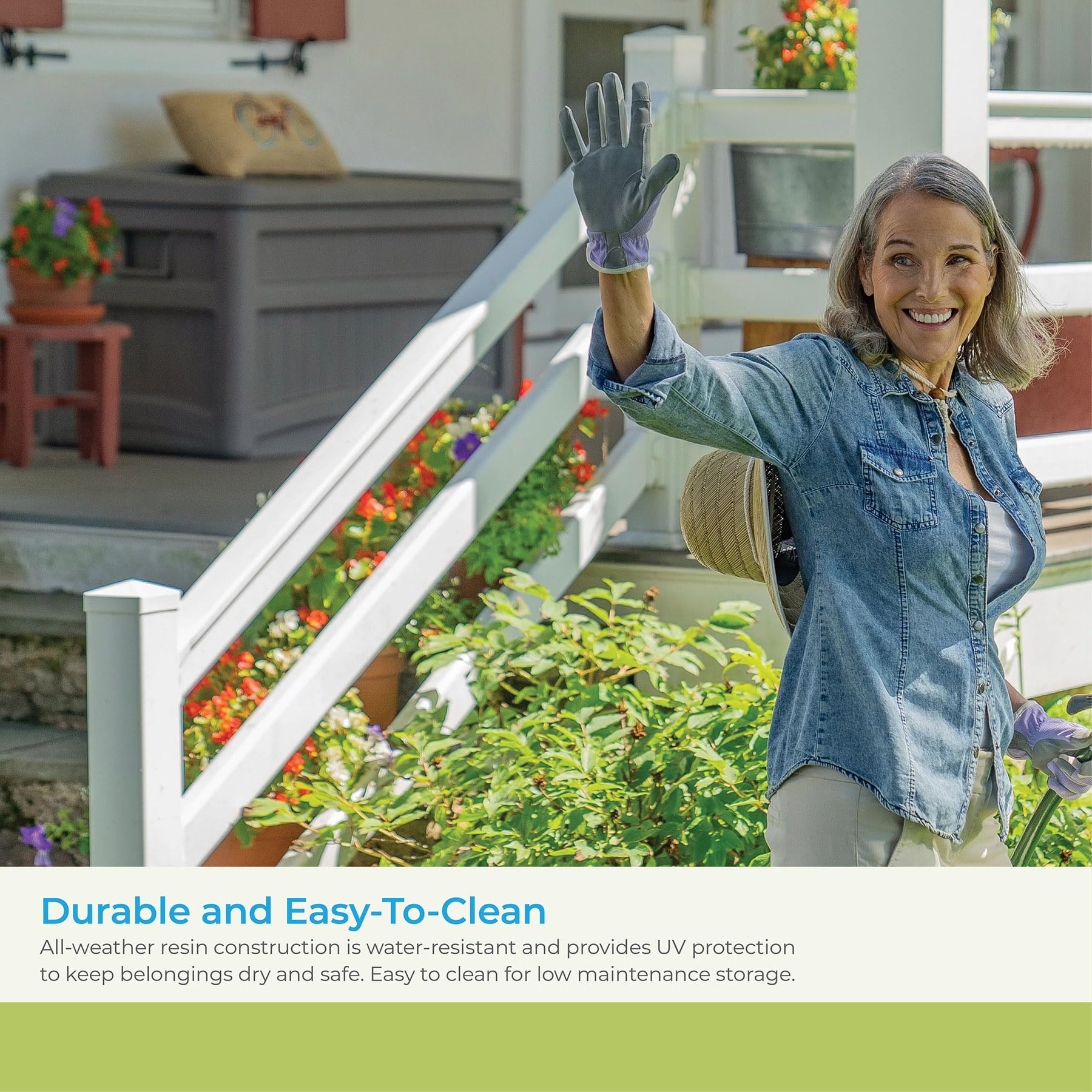 • VERSATILE: For use indoors or outdoors to store grill supplies, patio cushions, gardening tools, sports equipment, yard gloves, and more