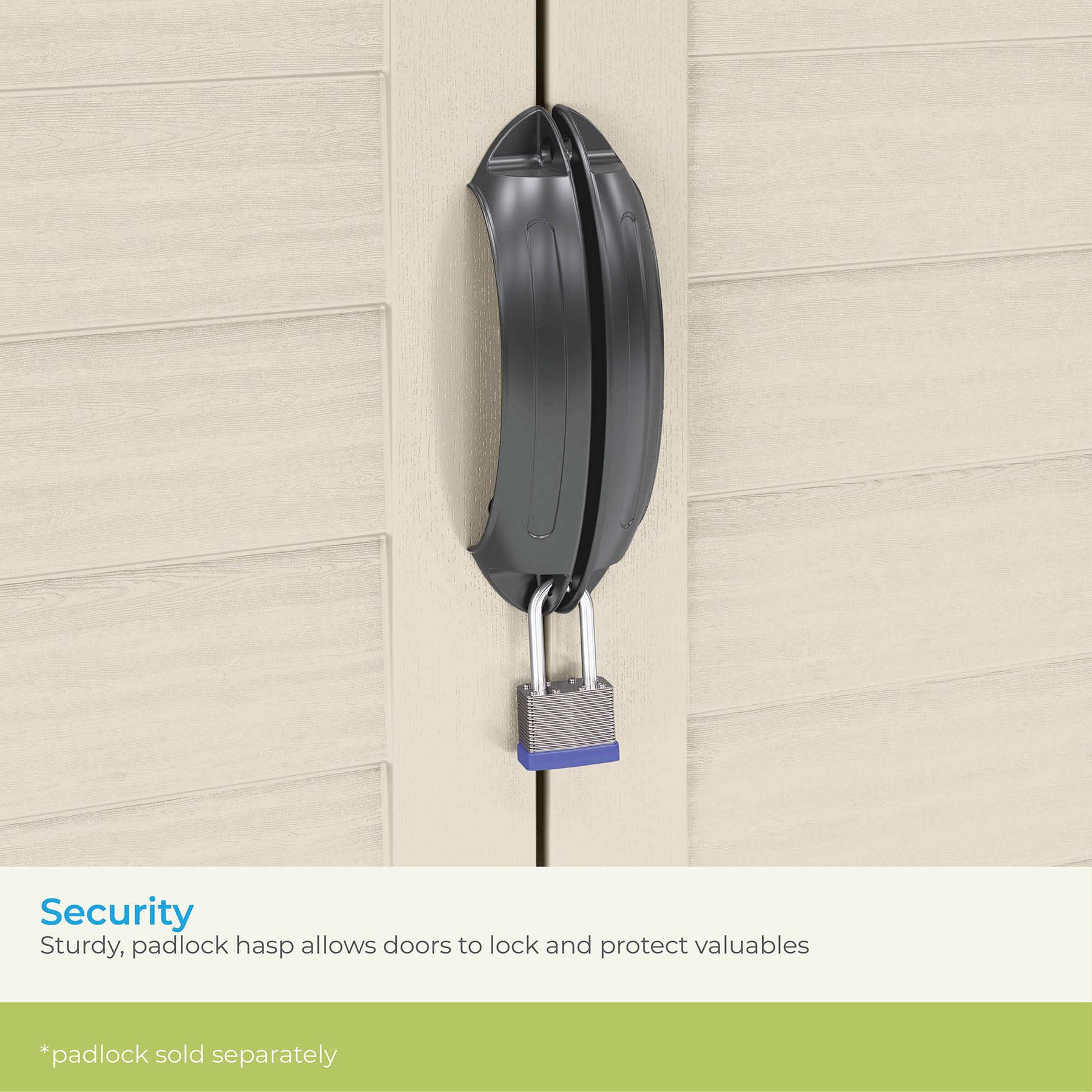 LOCKING DOORS: Equipped with a robust padlock hasp, the double doors ensure your belongings stay safe and secure while offering easy access when needed