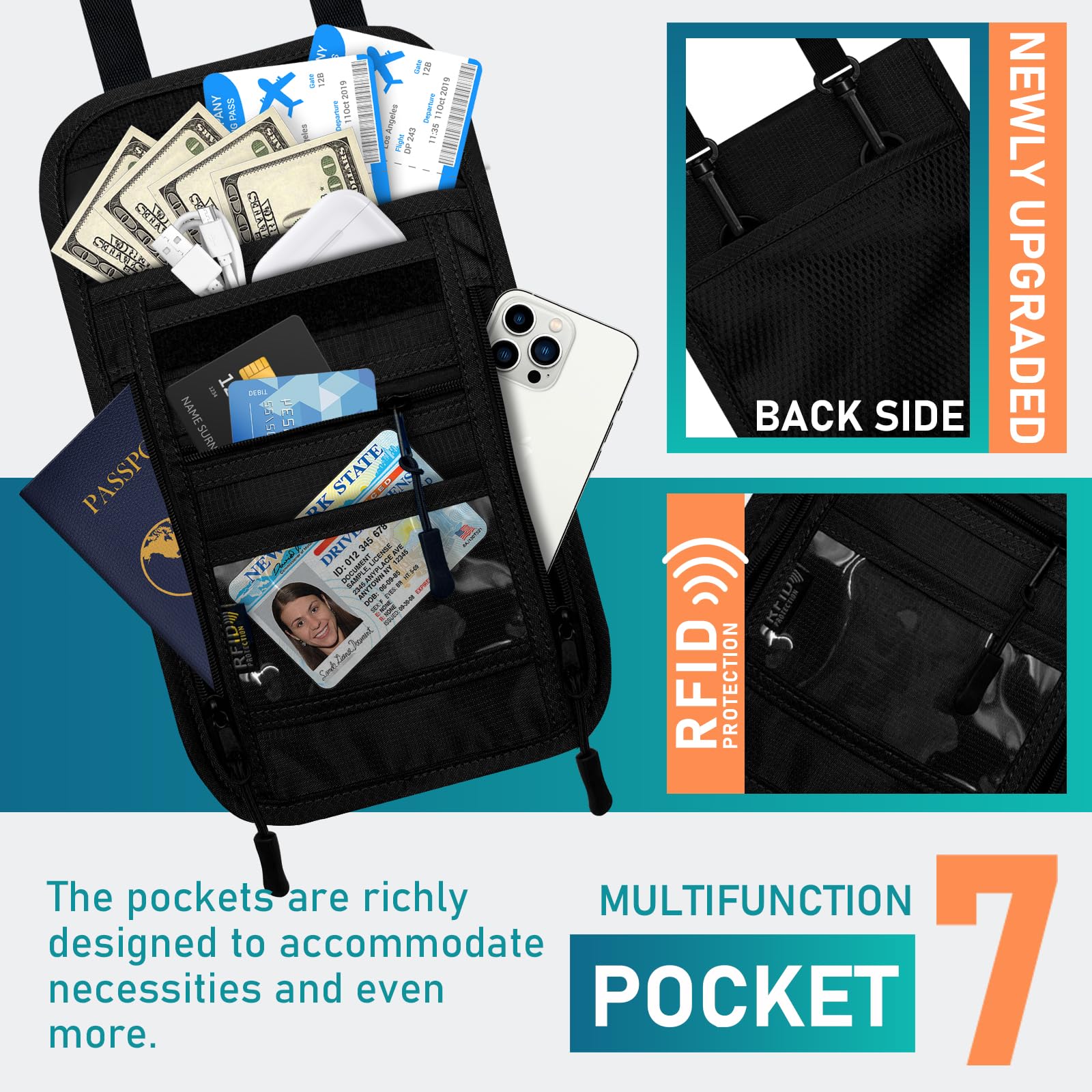 • Flexible Storage - Designed with 3 concealed zipped compartments, 1 Velcro closure patch and 1 ID window for a transparent boarding pass, this travel wallet makes security checks easier and organizes your documents and valuables.