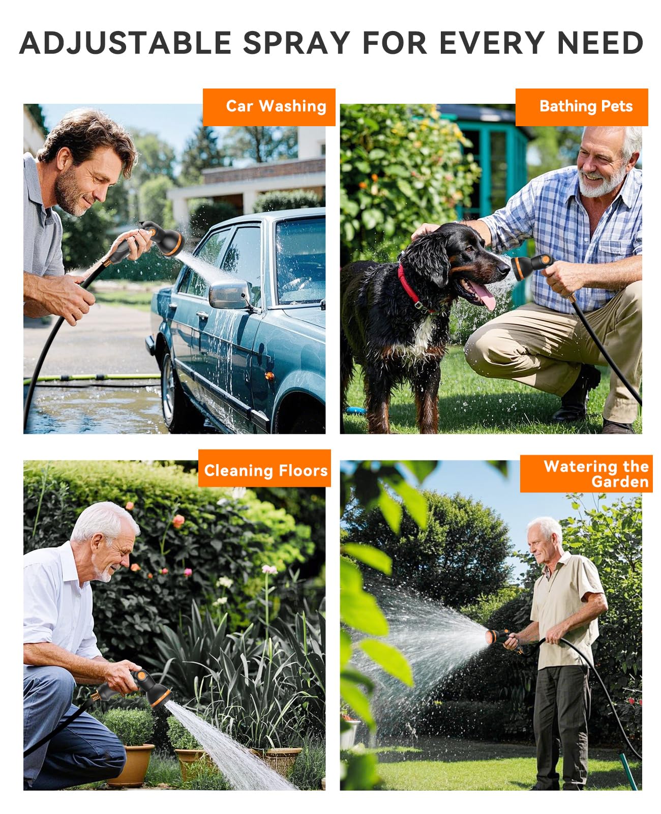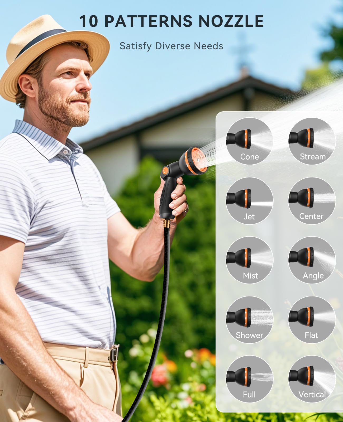 • 10 Adjustable Spray Patterns:Equipped with a 10-mode nozzle, it offers versatile spray patterns, from gentle mist to powerful jet, perfect for all your watering and cleaning needs.