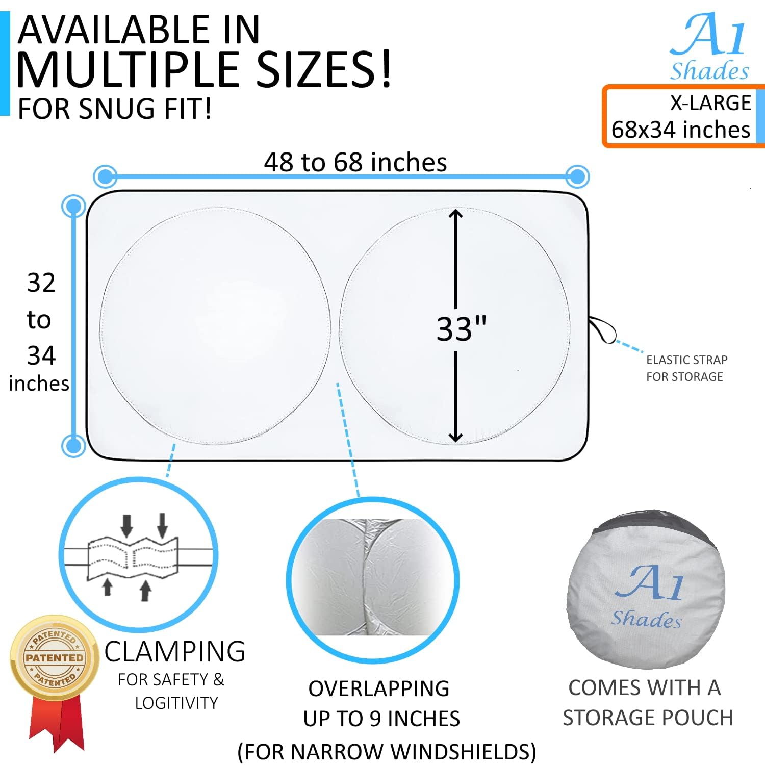 • 210T Fabric + Storage pouch (included) > A1 Front Window Car Sun Shade provides substantial blackout Sun Cover against Heat. Foldable Retractable Front Window Car Sun Shade for Car Window